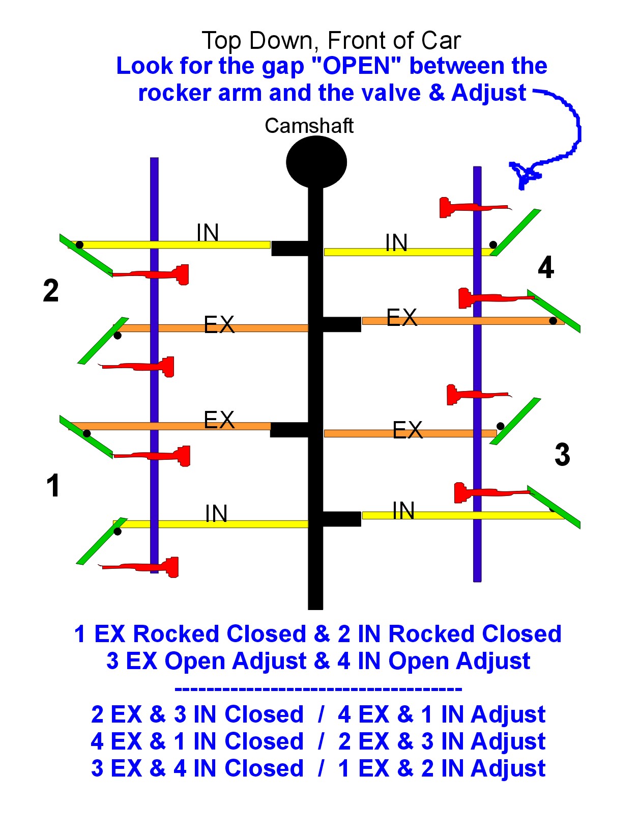 After reading this a few times and having it explained a few times, and still being the un-mechanical numskull I am, I had to draw a picture. NOW it makes sense. Rock close and Adjust Open. I know you mechanics will just laugh, but someday I'll catch on. (IMG:style_emoticons/default/biggrin.gif)