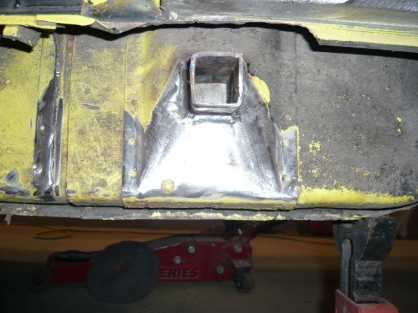 There's a ground buss behind the passengers headlight. I'll pull power from the same place the original one was tied into (yet to be done). That wire now comes into the front compartment with the loom and then goes into the passenger compartment again, with the loom. That "hardline" is a Seinesystem hood prop. Nothing but a fancy piece of fly rod in my book. An expensive one at that. I may have a line on a more competitively priced version but, have yet to see the samples. Cooler Lines - In the second picture (previous post), follow the loom to the firewall. Look below where the loom enters... there you'll see the mouse door for the lines. They are modified early 911S lines as per factory GT's. They'll run through the drivers footwell into hardlines going down the rockers. Again, all as a GT would have it. I hope to get the lines this week so I can snap some more pictures. My jack post was modified for the hard lines: (IMG:http://www.914world.com/bbs2/uploads_offsite/sphotos.ak.fbcdn.net-1110-1290909701.1.jpg) The sill supports were modified for the lines as well: (IMG:http://www.914world.com/bbs2/uploads_offsite/sphotos.ak.fbcdn.net-1110-1290909702.2.jpg) Here's the hole going into the drivers side foot well: (IMG:http://www.914world.com/bbs2/uploads_offsite/sphotos.ak.fbcdn.net-1110-1290909703.3.jpg) The heater tube was modified with an acetolyne torch and some drifts. I wanted to keep heat in the car. Saw this on a factory GT picture. |