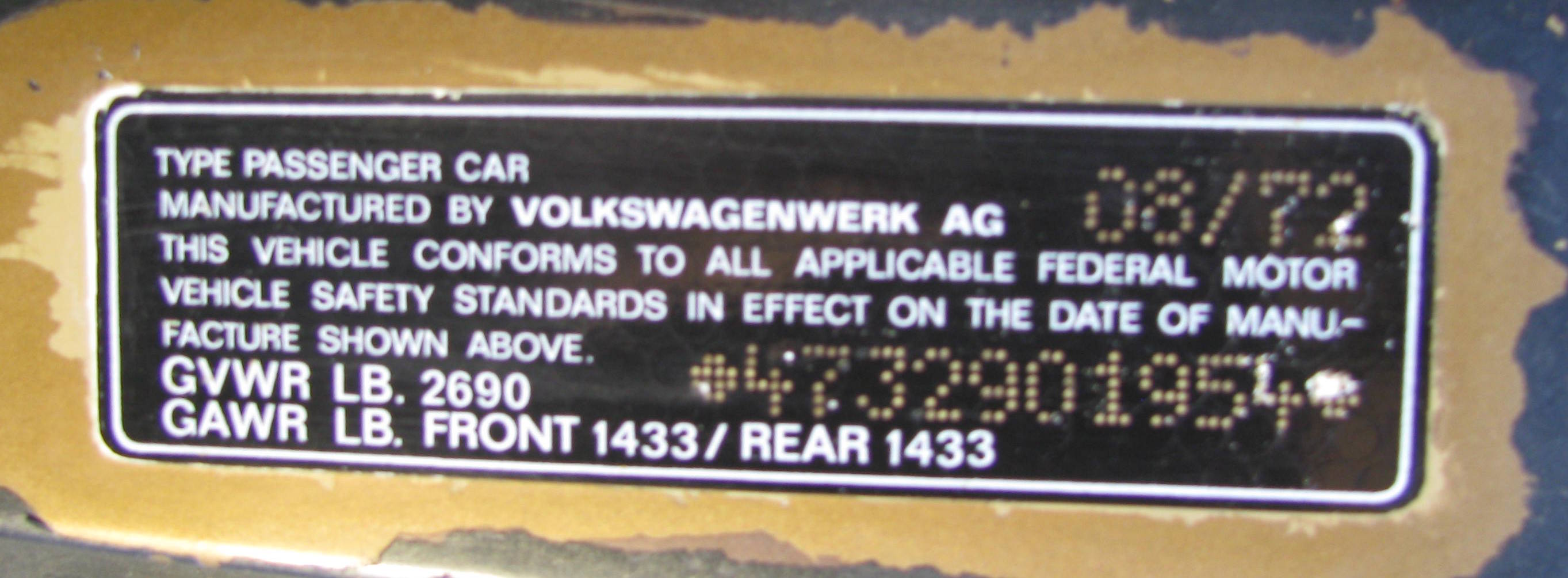 Any other new early 73 914 additions to this? (IMG:style_emoticons/default/confused24.gif) Because of my 73 2L being built just 8 days after the Orange one with A-pillar vinyl in the posts above - and mine having an 8/72 VIN date vs. the Orange at 9/72 - I'll be checking the A-pillar & windscreen frame of mine for any remnants of the vinyl there prior to all its repaints, to see if we can push these early 73 MY "quirks" up closer to the 2000 VINs mark. Mine is VIN47329001954, and has some of the oddities noted above, and was built per Chassis Nos. about a week after the Orange VIN...1102 above, but it has a 9/72 date at it's VIN sticker, while mine is 8/72 with a 8/31/72 Chassis No. - ONE day & maybe "The World's Fastest 914 Built"!!?? (IMG:style_emoticons/default/biggrin.gif) (IMG:http://www.914world.com/bbs2/uploads/post-10181-1264213917.jpg) ![]() vs. . BTW - to decode the Chassis No. for Build Date (of stamping, they took a week or so on the line IIRC), do the following: Get Calendar for Year in the Date on Your VIN sticker (MY crosses 2 calendar years), you can Google for it. See Karmann Plate @ LF/Driver Door Jamb or stamping on rear floor of rear trunk for Chassis No. - then ..... Chassis No.: XXZ95YY XX = Week of Year (start week #1 even if only one day) in Year of VIN Sticker date Z = Day of Work Week M-F = 1-5 95 = Karmann Plant ~ 96 means 100's for YY below on early Karmann Plates YY = is the number 914 built on that date For example - mine translates to 36th week for Thursday 8/31/72 & 45th 914 built that day; while John's Orange 2L is 35th week for Wednesday 8/23/72 & 58th 914 built that day - very close together at 8 days, but his VIN indicates a Sept. 72 & mine an Aug. 72 - just the reverse dating sequence. (IMG:style_emoticons/default/blink.gif) |