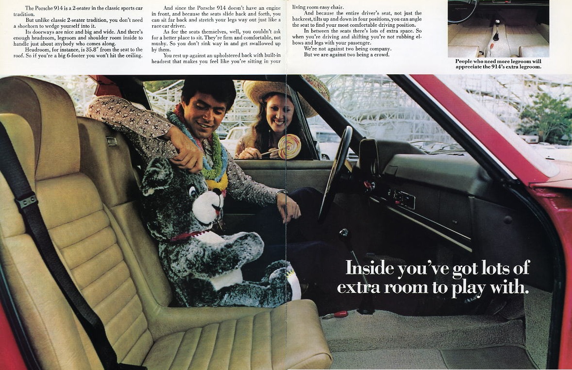 ... Garsh - I wonder if his wife knows she has competition!!?? (IMG:style_emoticons/default/lol-2.gif) Okay - so first of all, we have someone over on Wheels & Tires asking for paint advise to restore his wheels on a 75 2.0, but we need him to load up some pix ~ then those with that type of wheel chime in with what you know to help this poor guy out! Plug #1 (IMG:style_emoticons/default/idea.gif) #2 - I'll post some interesting vintage 914 related ad which I've found online or somewhere & I'll follow later on with others, but you guys & gals need to hop in here in post some that you've found. Make it fun & interesting, & if it has prices from "back in the day" - all the better to drown our sorrows for today's outrageous prices. (IMG:style_emoticons/default/dry.gif) Jeff - I know that you have a collection of fun stuff, so jump in here Mr. Bowlsby! (IMG:style_emoticons/default/poke.gif) By the way - if he has the time & interest, I think Jeff Bowlsby would be an excellent moderator here! (IMG:style_emoticons/default/smilie_pokal.gif) .... he taught me everything I know (almost)!!!!! (IMG:style_emoticons/default/laugh.gif) Okay - here's a great ad for the Vintage Dunlop SP57 Tires which used to be one of the main OEM tires delivered from the factory on 911s & 914s back in the 1970's. It looks like they used something like Matchbook Cars for the ad, since they didn't really have easy Photoshop back then, but you could do similar stuff with actual paste-ups. (IMG:style_emoticons/default/idea.gif) Judging by the file name on this one, credit goes to Mr. Bowlsby for finding it! (IMG:style_emoticons/default/beerchug.gif) ![]() Here's a snippet from a 1973 road test noting the 165HR15 Dunlop SP57's on the then "new" 914-2.0 or "914S" .... ![]() . Come on - who's next!!?? (IMG:style_emoticons/default/confused24.gif) (IMG:style_emoticons/default/popcorn[1].gif) |