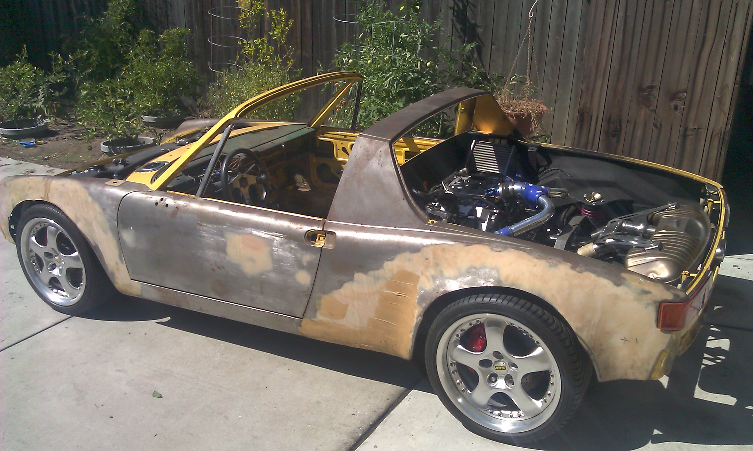 The project started as a 1975 1.8 in good condition. Here are the specs for the car. - Audi 2.7tt v6 with Vems standalone ecu - Boxster (Audi 012) 5-speed transmission - F&R suspension from 993 This is how the car has sat for about 10 years |