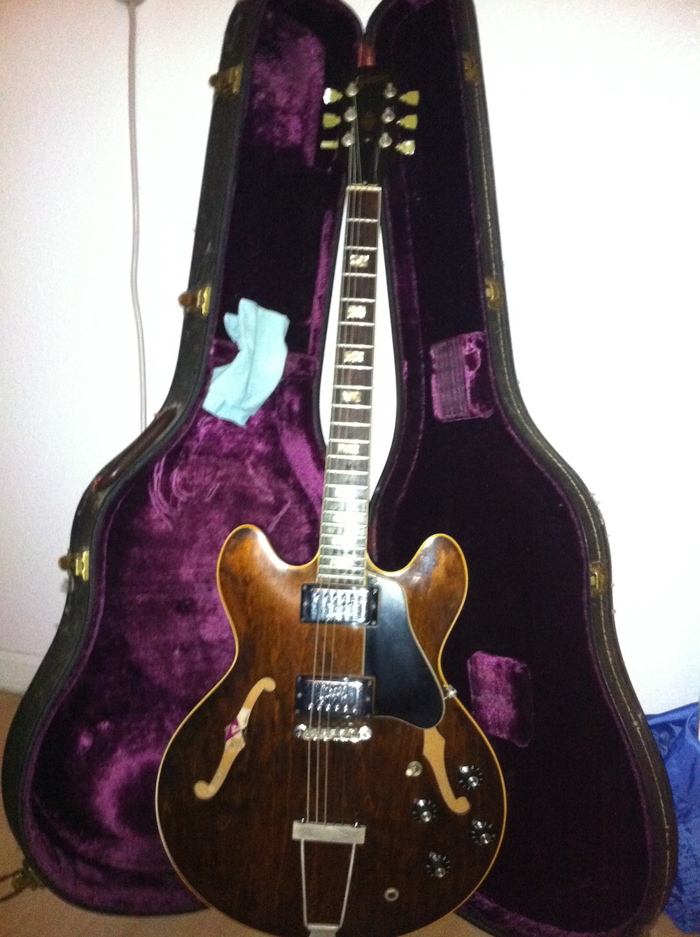 No pics of my amps though as they are in a climate controlled storage and mostly used for recording purposes. I mainly play through a Marshall but record through various vintage Fenders and boutique amps. In order is a 90's Gibson J-30, '89 American Fender Deluxe+ Strat, 90's Les Paul, and a '72 Gibson ES-335. |
