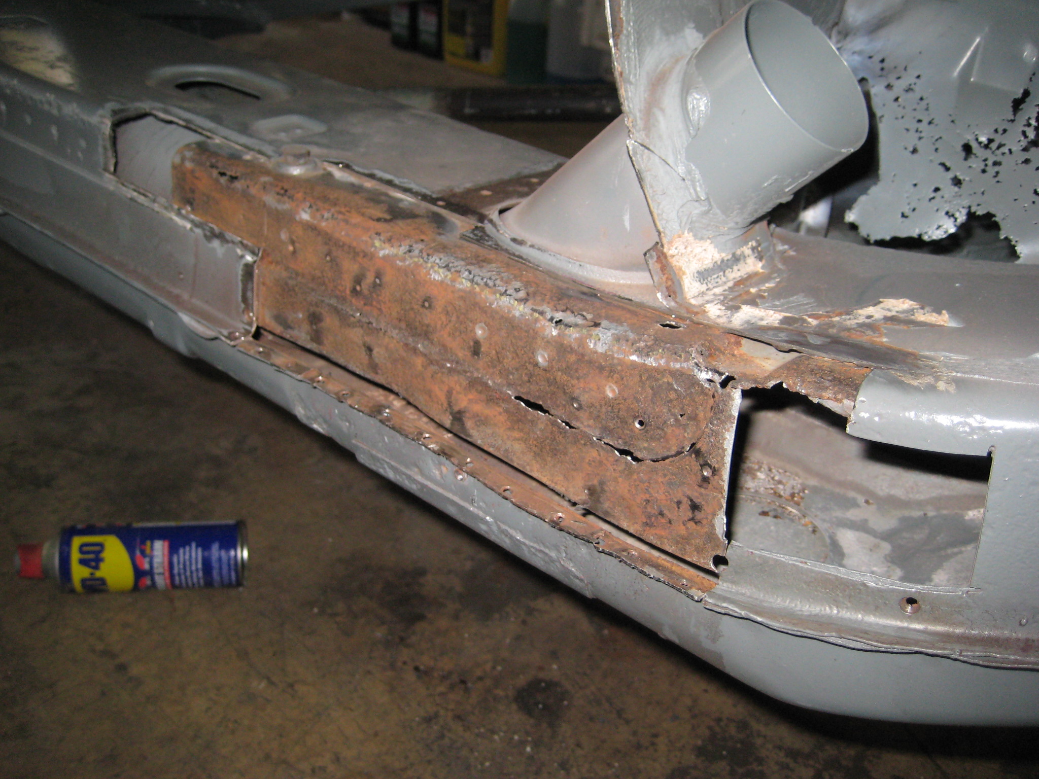 Top layer of bad stuff cut out... I didn't get a picture but I also cut out some of the substructure and welded in a new piece before welding in a new formed piece so everything is doubled-up for strength (IMG:style_emoticons/default/smile.gif) |