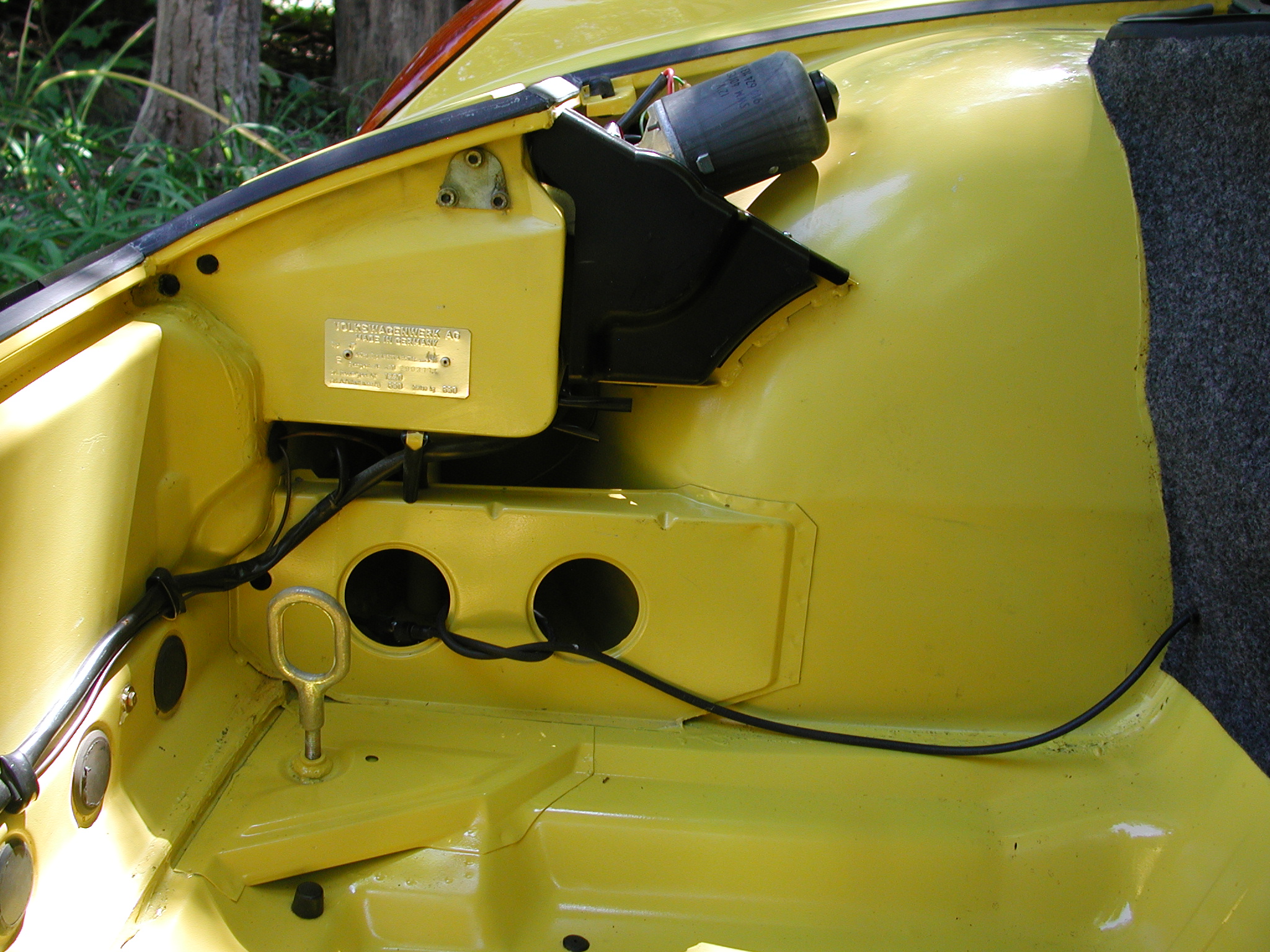 The idea for this thread came about from viewing eBay posts calling attention to a particular 914 and the resultant comments (some rather blistering) with regard to the alleged,implied, or stated originality/authenticity of aforementioned vehicle. Being the second owner of this 1970/4 for the past 37 years, and for the most part having kept it true to factory spec and appearance during this period, I think a thread inviting interested Forum members to point out discrepencies and alterations from OEM might make for some interesting viewing and reading. This is not an invitation to pick nits about cleanliness or color preferences or my "taste" in what I've changed from stock. It is an invite, however to find what I changed, or "improved". Some mods will be very obvious, others, I will be surprised if they will be noticed at all. Hopefully, if this thread prospers, we will see other members post their specific OEM (or almost OEM) model years for close scrutiny. I shall post photos of a specific area on the car until all comments and observations noting the anomilies are accounted for. Remember, this is a 1970, 1.7, build date January 1970. Attached thumbnail(s) |