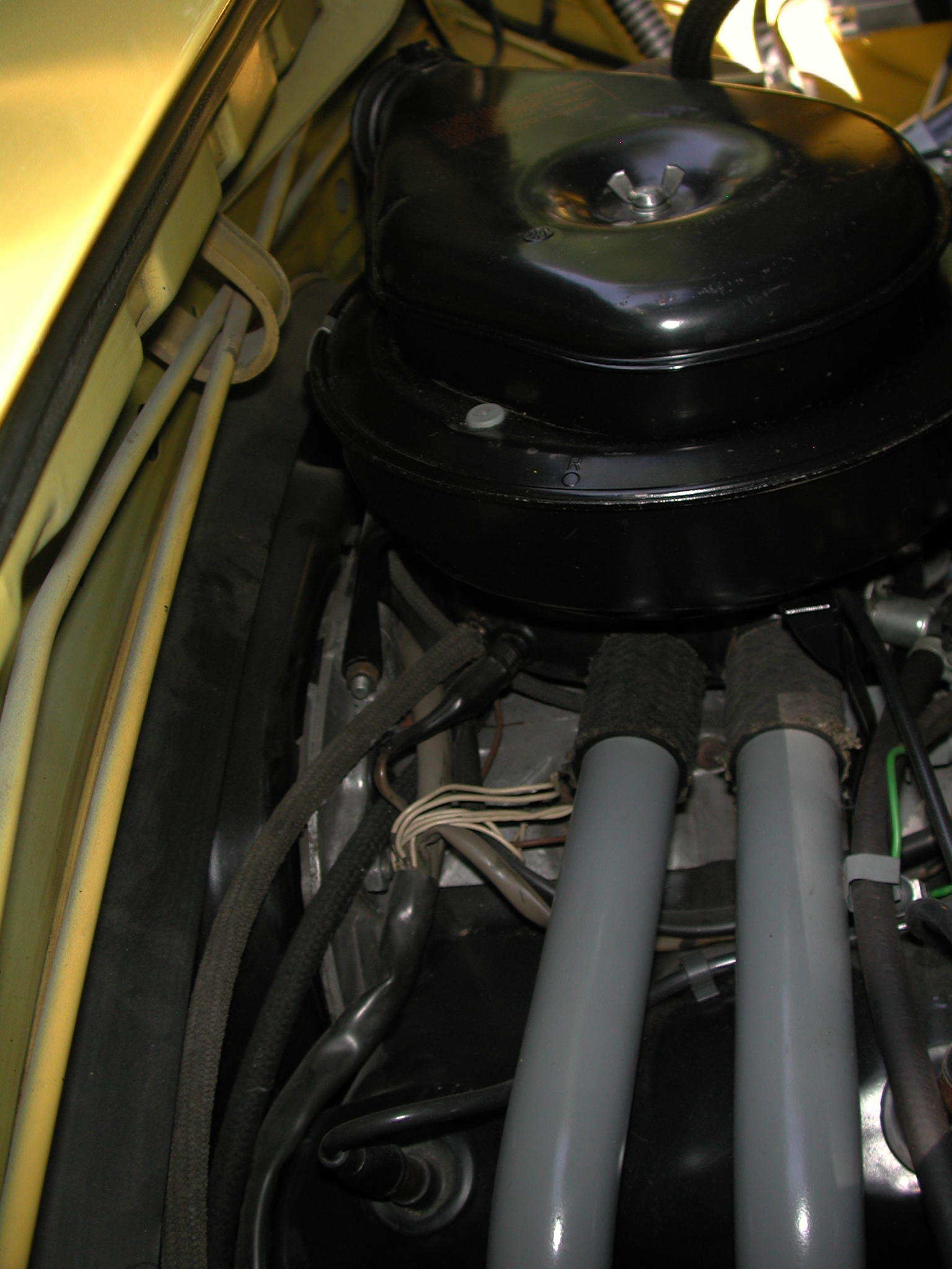 I suppose some photos of the engine compartment are in order to finish this thread. Getting really good pics within the confines of the engine bay is always a challenge. Remember, this is a 1970/4.