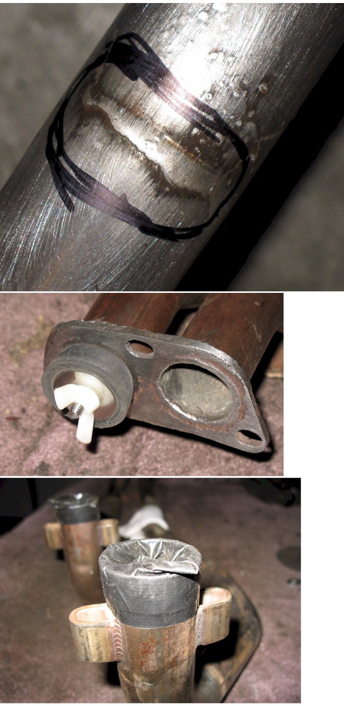 I posted this last year, heating season is here again. These are big cracks, a tiny one you would not be able to hear would still be dangerous. These are not accident damaged. If you have a set on your car, grab the carbon monoxide detector from home and take a ride with the heat on and windows rolled up. There is a detector used in small aircraft also available. The last photo is how we now test for leaks using air pressure. Brad
