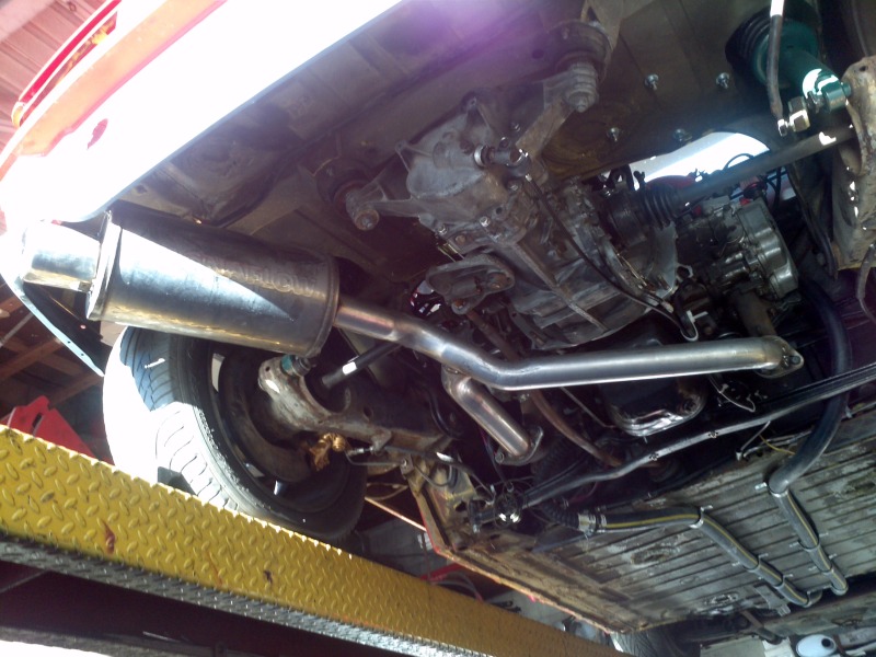 Thanks but I believe even the renegade one needs modifying when using the subaru transmission. It does, but one thing to look out for is that the cradle doesn't block something important (like the oil filter) when installed. The renegade one does not and the one posted above looks to have plenty of clearance too. I want to say that there is/was a cradle from smallcar that had this problem, but don't quote me on it. I'll be modifying my renegade cradle when I get around to the suby trans, but that is only because I already have it and I have some fab skills. I'm definitely not knocking on the cradle posted above, it looks good! For our project we used the Small car engine mount, we only used the two arms that attached to the motor and then connected them together with some angle iron and then bolted it to the stock engine bar. it required a 1/4" spacer to clear the shift rod hole b/c of the thermostat housing, but then we still had to grind down the top of the shift rod hole for more clearance. We could've just added a thicker spacer, but then the starter would've hit the bottom of the trunk. Here's a picture of our car from underneath and the small car engine mount: (IMG:http://www.914world.com/bbs2/uploads_offsite/i62.photobucket.com-2697-1334685049.1.jpg) (IMG:http://www.914world.com/bbs2/uploads_offsite/i62.photobucket.com-2697-1334685140.1.jpg) |