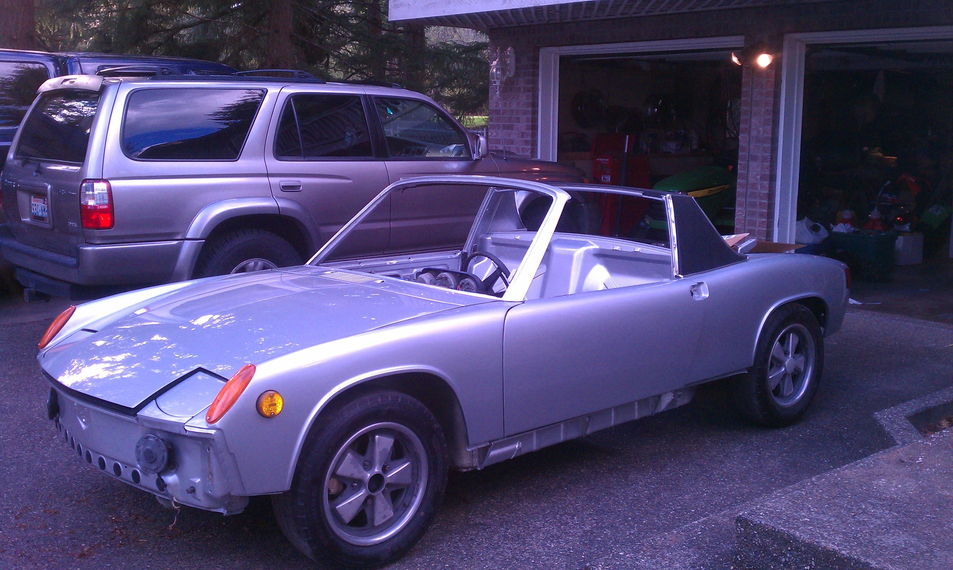 The recent PNW BBQ, the rumors were floating around if I REALLY had a 914. I've owned it for 2 years and the project was purchased as a running vehicle needing help. I test drove the car and it ran and shifted fine. Only drove it about 2 miles max due to the left front caliper sticking and pulling horribly to the left when I hit the brakes. Yea, toward the centerline. So enough of that non-sense! Sent the brakes off to Eric Shea for a rebuild. I got them and started the bleeding process and found the resivoir leaked. It ran down below the fuel tank. STOP, gotta fix that. But need to clean up that brake oil from under the tank. Remove the tank and since it's out. Yea, better clean it and line it. DONE! Along comes the Portland Tranny Clinic with Dr. Evil. So, I should pull the tranny. But since the tranny is coming out, I should just pull the whole motor and tranny. DONE! Since those are all out. I should replace the tunnel fuel lines. In process..... Since motor is out, I should have the engine bay repaired (battery tray and support) and painted. I started cleaning this up and found car cancer. It was a very sad day....I have been kicking around what to do since and gathering funds at the same time. Here are some pictures of where I am at. I will start this build thread and I have 2 years or less to complete this build. I can't lose and I don't like to lose. If I lose, then surely the gal's parents will think I'm a loser. Granted the bet is for liquor, so get them drunk on their victory and they might forget................. pics: Car as I bought it in San Fran: ![]() |