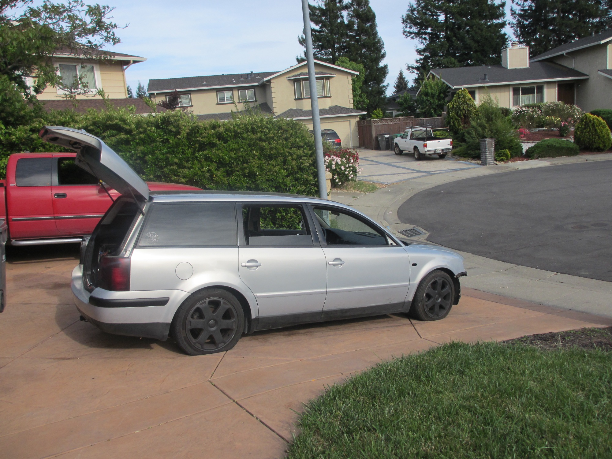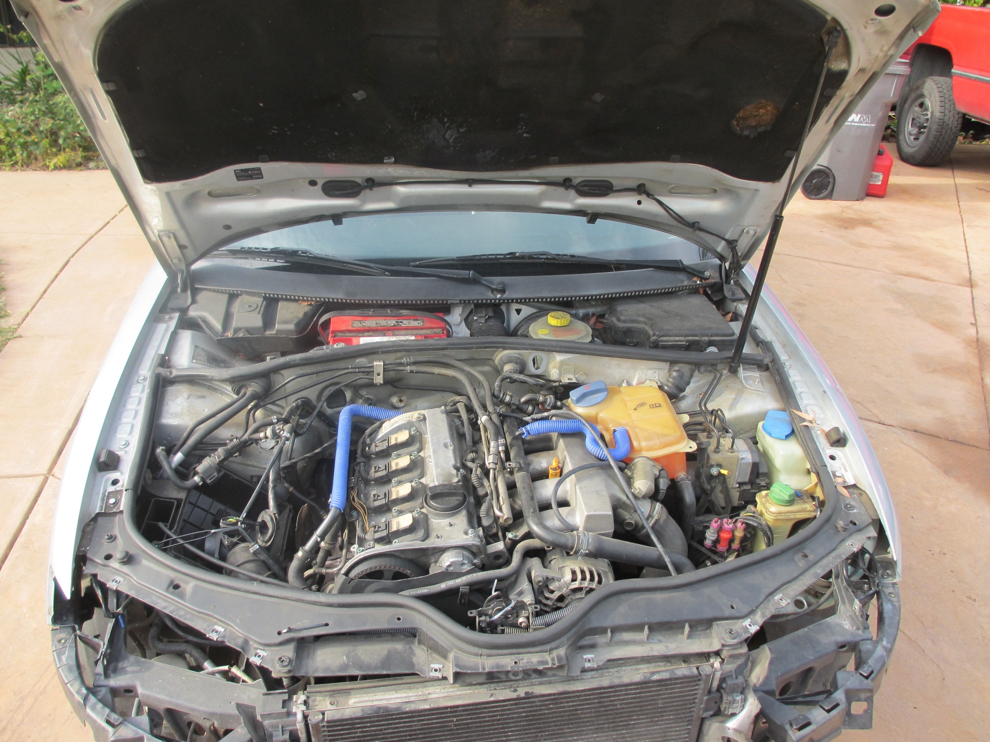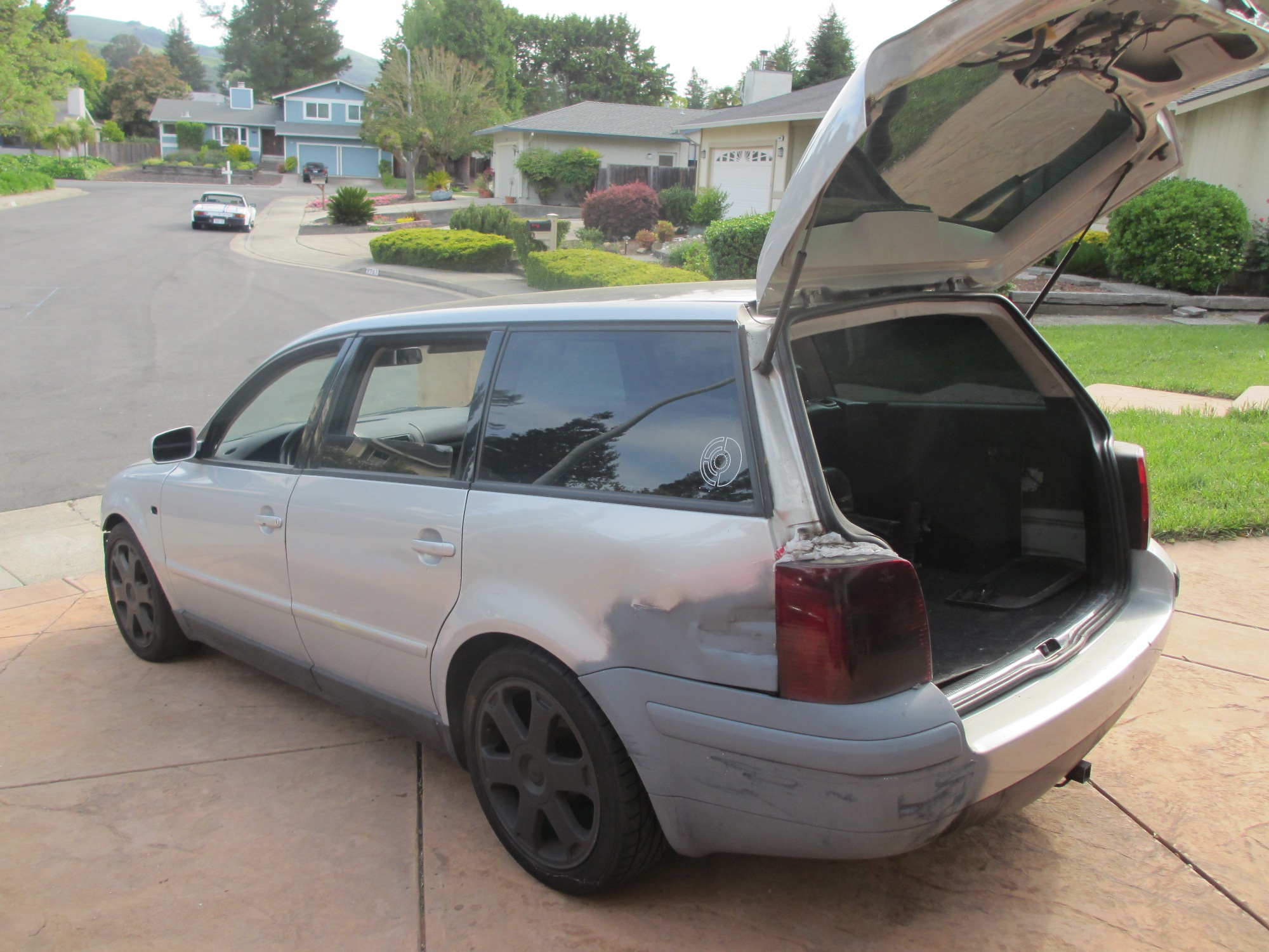 2000 VW Passat, 1.8 Turbo, 5 Speed, Chipped ECU, SPEC Stage 3 Clutch, bunch more goodies. The guy hit a 1 foot by 3 foot piece of concrete on the freeway at 1am. The right front wheel took most of the blow along with the rocker panel and rear wheel. The bumper and intercooler were also damaged. Engine runs good and is driveable, but the two wheels and tires are wasted! The guy is out of work and sold it to me cheap. Real cheap!!! Some of the interior was sold prior to my purchase. Hence the lawn chair drivers seat. The Plan: strip apart the harness wire by wire and get rid of what I don't need. No biggie, been an electrician for over 20 years. Decide if I want to keep gauges, info display, etc... Install the engine/tranny package. Get it running as is but with my air/water intercooler. Then decide if any other mods are warranted. The engine should be good for 200hp as is. Sell off current engine, ECU, 901, etc... I sold my first blown rotary for $500 yesterday. Who would have thought there was a market for blown engines??? (IMG:style_emoticons/default/WTF.gif) This time I am using the factory VW ECU and components. No custom programming. I may get it tuned once complete and see if there is any more easy hp inside. At least I don't have to invent the wheel on this one. The intake and exhaust on this engine are on the same sides as my current setup. Nice! This is a throttle by wire so the pedal will have to swap too. The clutch master cylinder also. Other than some interior bits, this is a complete car. I should have most everything to pull this off. Goal Have it in running condition by WCR 2013! Is there a record for the most engine swaps for the same car? (IMG:style_emoticons/default/confused24.gif) Stay tuned for part three of my build!!! (IMG:style_emoticons/default/cheer.gif) |