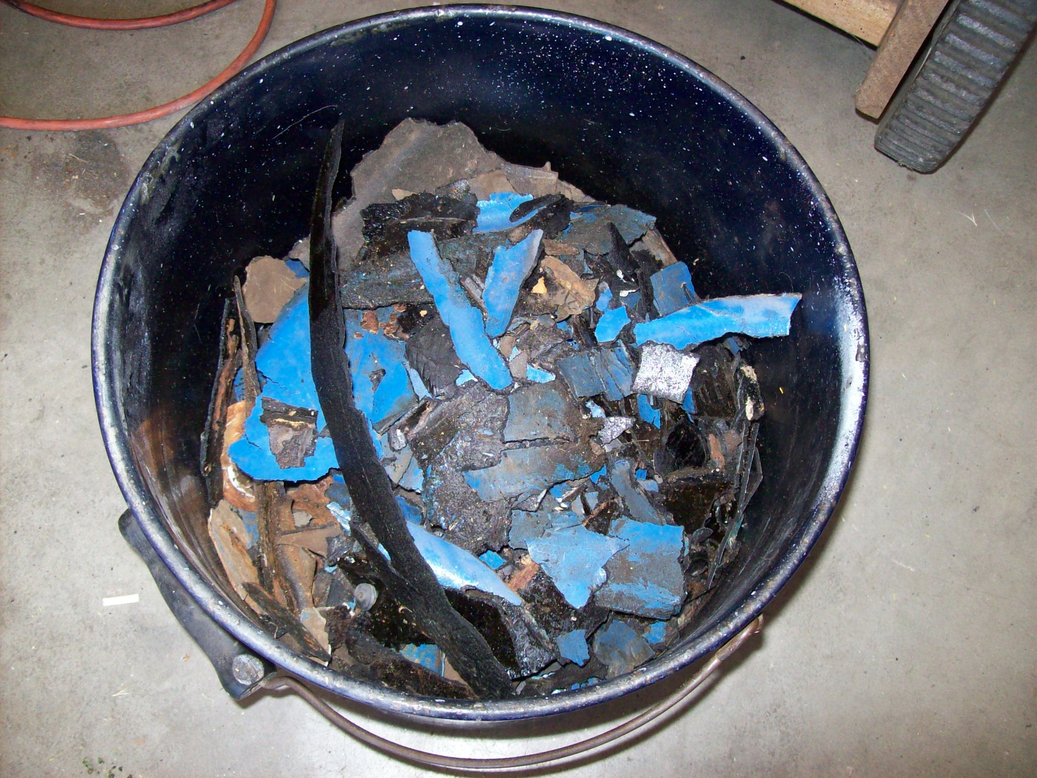 I attacked the floor sound insulation as I figured the sandblaster wasn't going to be able to blast through it. There is a technique. The floors are oxcidized, but I think they will blast clean. Must have been 15-20 lbs of this stuff. This area is all bagged up and ready to go My Porsche pickup truck... Speedo |