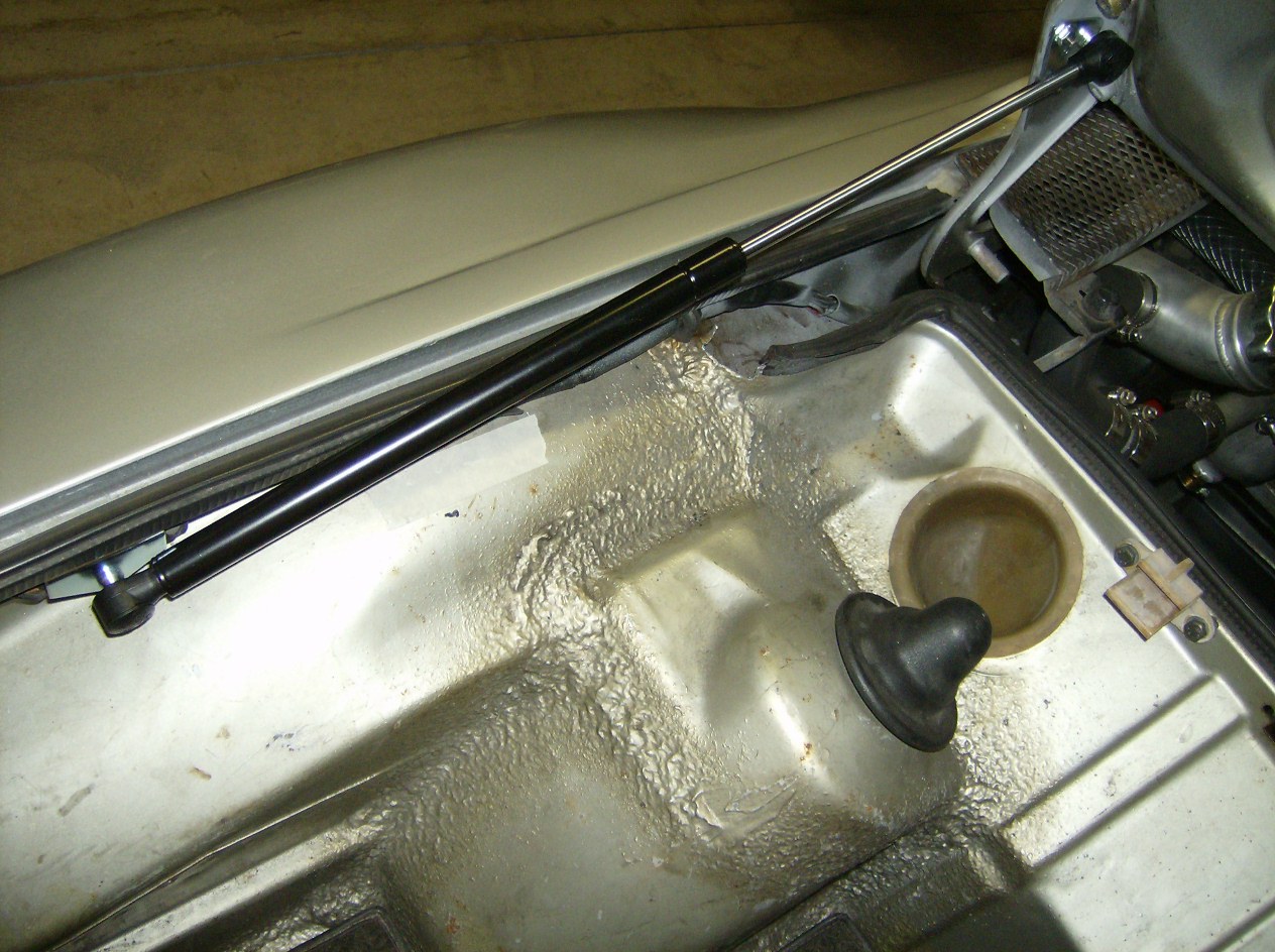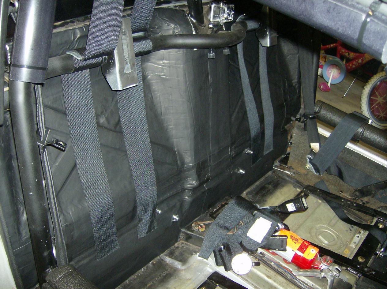 Added another layer of Damplifier (http://www.secondskinaudio.com) to the firewall. Mainly because it is now offered in in black Changed out the roll bar padding to the "correct" SFI padding. I like the BSCI stuff (http://www.rollbarpadding.com) because it's just a little softer than the hard padding offered by others. The previous owner had removed the trunk torsion springs for some bizzaro reason. I'd been keeping the trunk open with a wooden grade stake. Finally bought the CAMP914 trunk shock kit (http://www.camp914.com). |