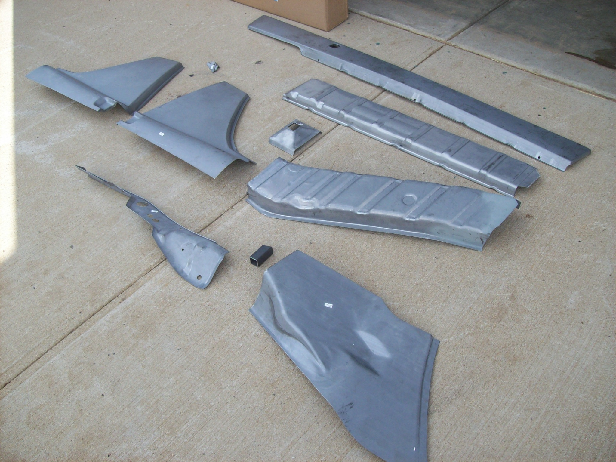 I ordered a big batch of repro steel from RD with Peter's help. Somewhere along the line, the shipper laid the box flat, something got stacked on the box, and the outer rocker for the right side got damaged so we had to ship it back. Claim seems to be going smoothly...we'll see.