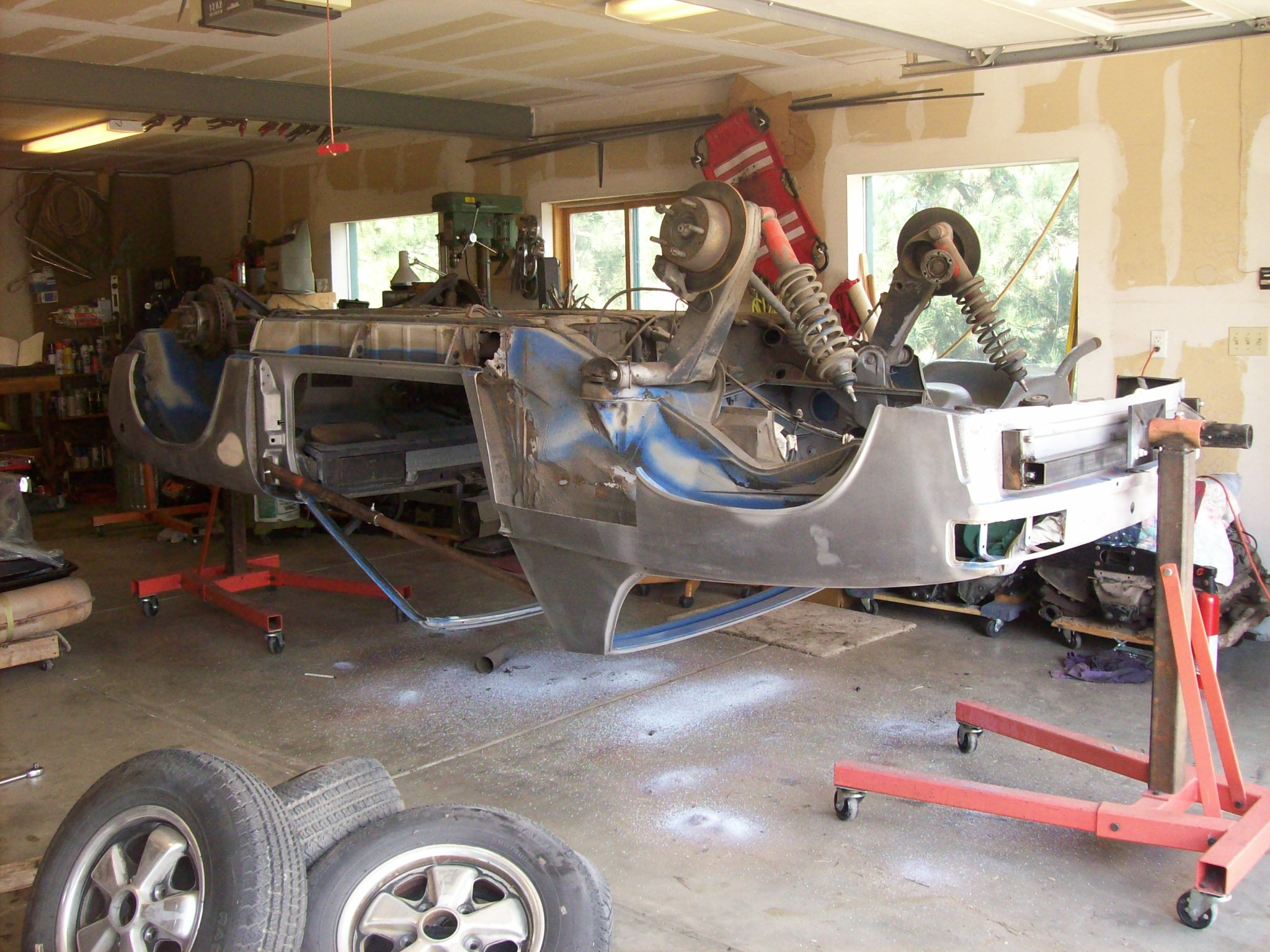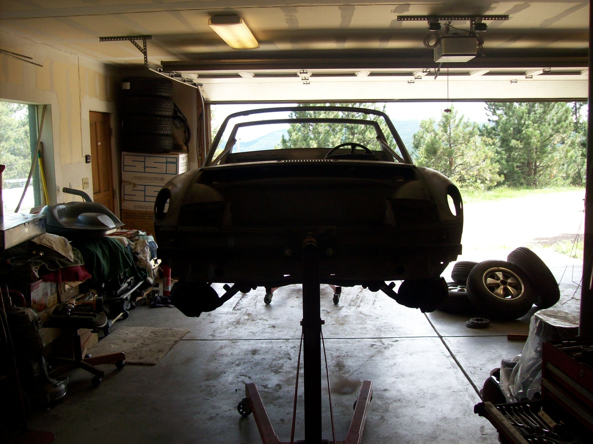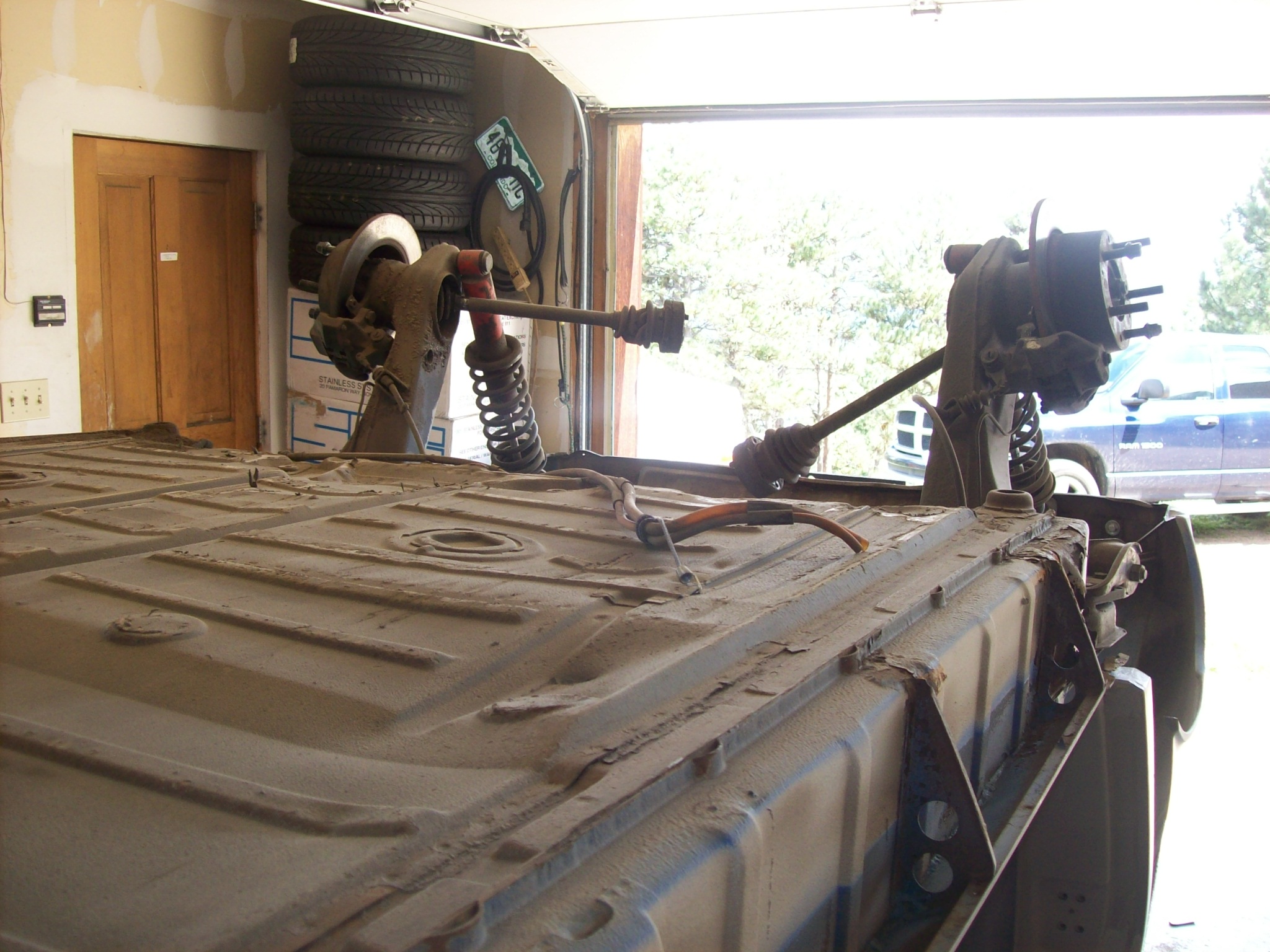 So not claiming to be the best driver...I have had my share of unfortunate circumstances in cars. Most of the time, it was a result of rapidly changing conditions (weather) or deer...hey I live in the mountains at 8100 ft. I remember as a kid hearing some teenagers bragging about having "rolled their car" and walking away unscathed. Well as I usually drive a 911 year round and don't have much seat time in a 914...I guess I got a bit cocky yesterday. I should have been more careful, it was nobodies fault but my own...and as I can fix it...I will. Not for the faint of heart, but here are the pictures. Before...kind of a nice artsy shot During ... And after... Pretty scary stuff. Oh I get it, if I keep rotating the car...more of this stuff (sandblasters media) will come out. I could just hook a small motor up to the rotisserie and leave it over night. I might also polish the internals on the chassis Removing the suspension is going to be an easy job while upside down |