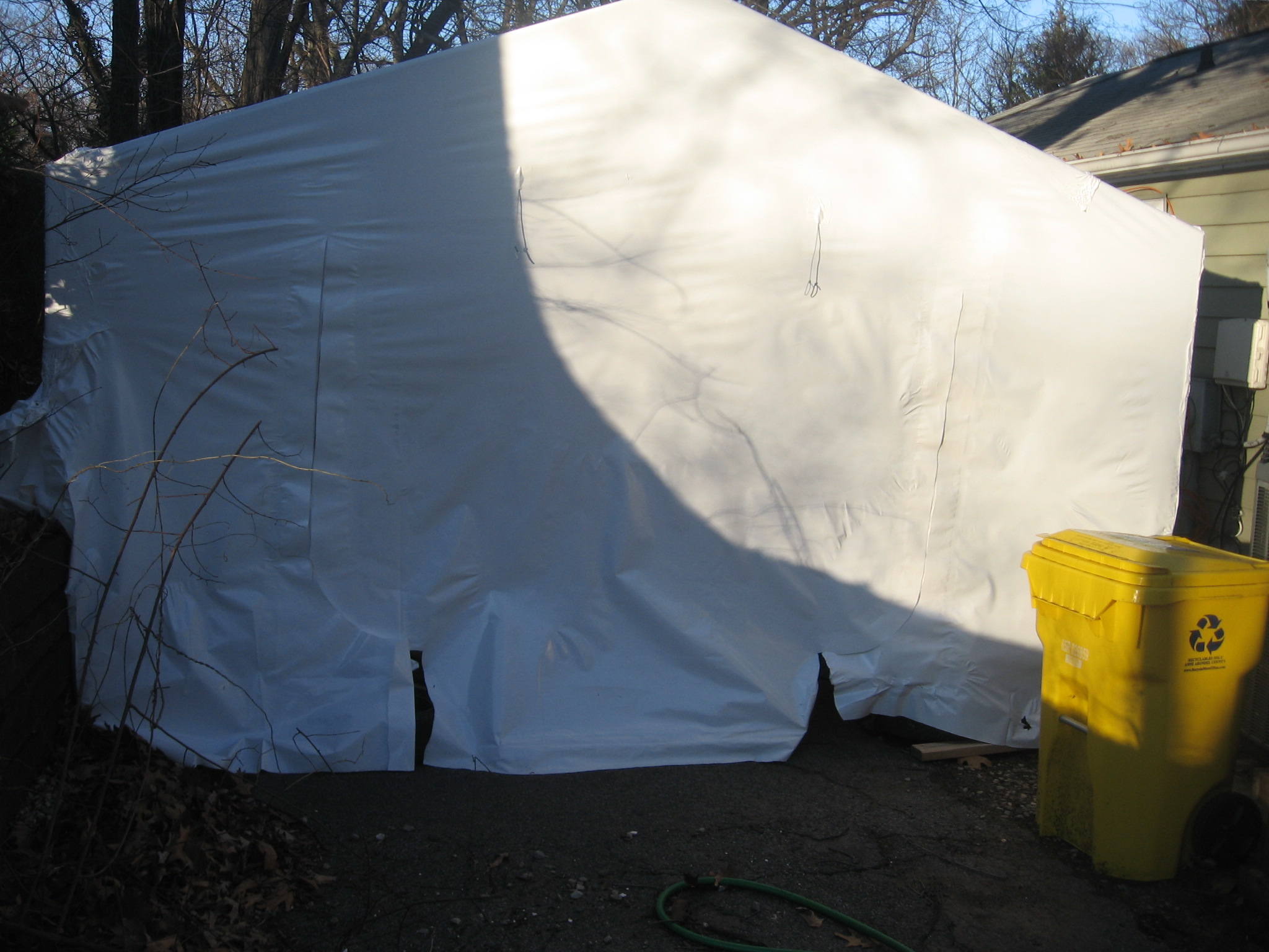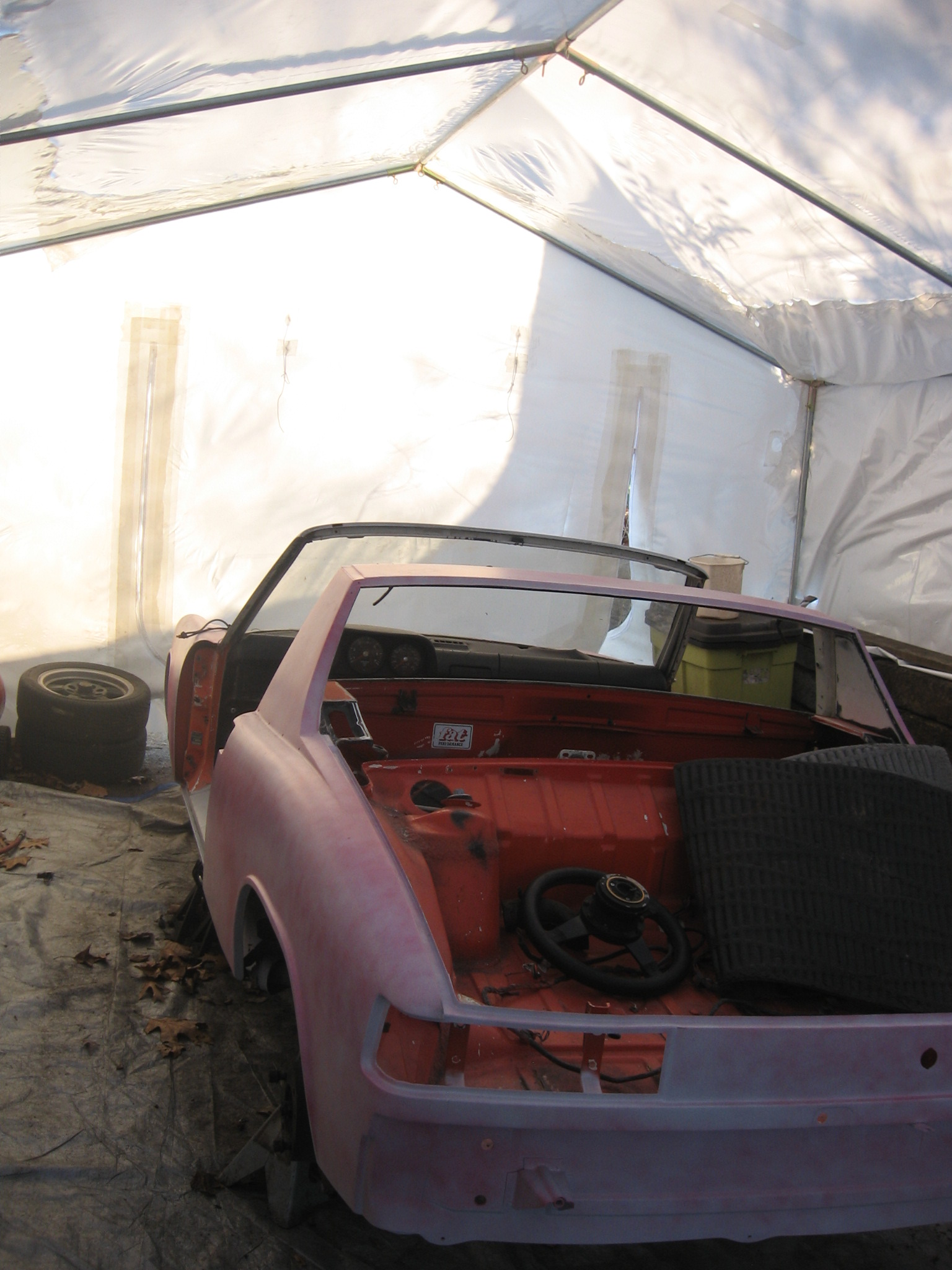 We use this shrink wrap stuff to store boats for the winter. I built a tube-frame then covered it with the shrink wrap. Voila! Instant garage. Now I can work on the car again (IMG:style_emoticons/default/biggrin.gif) Attached thumbnail(s) |