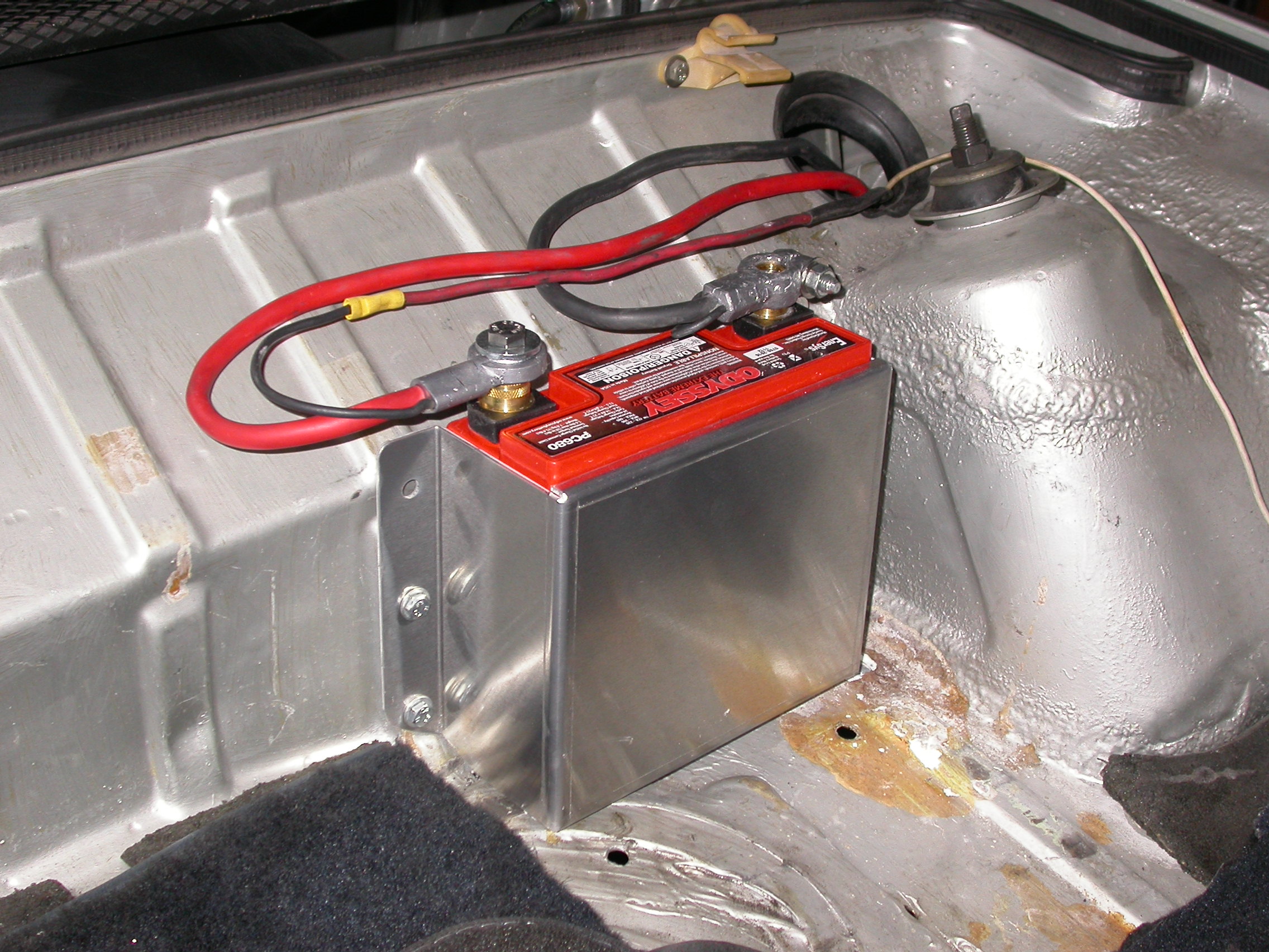 They also make a simple, but effective formed sheetmetal mount that works good. My car had the battery tray removed and the battery installed in the trunk before I bought it, but it was done poorly. The Odyssey is a much cleaner installation. |