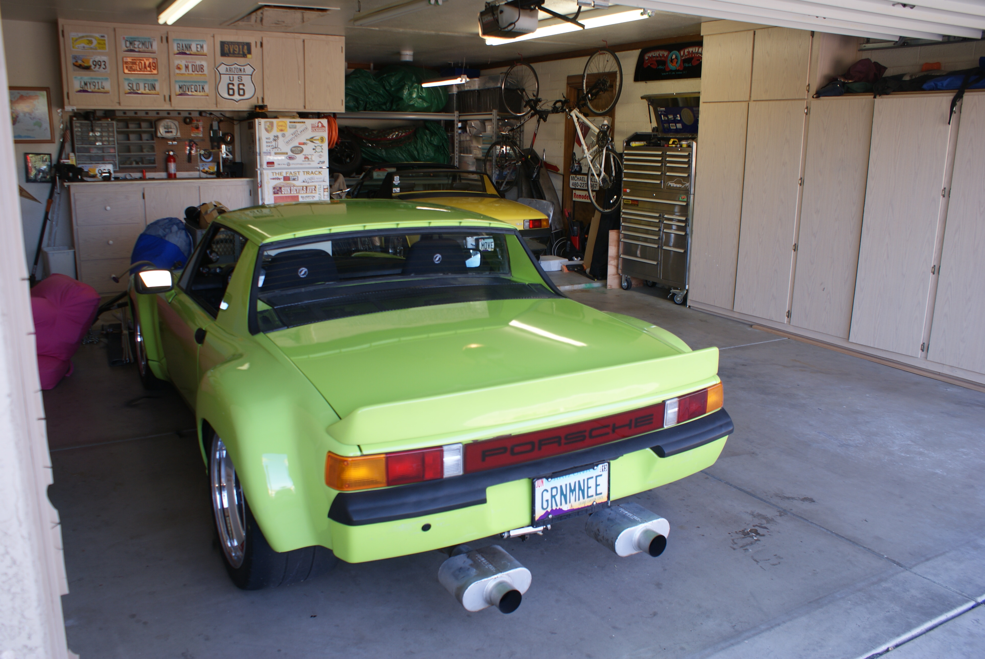 My hope is to give it a nice finished look but still have it be usable as need. Hopefully not *too* often! The plan: Refinish cabinets All new paint on the walls Fix the ceiling's endless cracks from the previous owners storing boxes and boxes of files in the attic. New bench top New racks to go over the hood of the car Epoxy floor Cool 914 & Porsche stuff added I don't have too many great before pics other than when these jokers were here for my engine install and Jason's(AZ914's) engine hook up and when I was storing a car for some other guy....So the basic starting point: Attached thumbnail(s) |