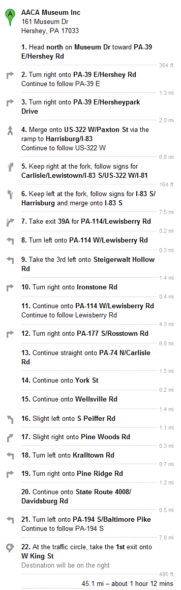 We're looking at hitting Hershey a day early this year due in part to the AACA museums Porsche exhibit. I've been chatting with some of the local boys and were trying to make a day of it. Everything is in rough planning but it looks like this: FRIDAY APRIL 19th: 8:45 - AACA Museum. Stage in parking lot for 9:00am entry. 11:00 - Meet/Stage in Museum Parking lot. 12:30 - Lunch - Haufbrauhaus, Abbottstown, PA. 2:00 - Drive to Gettsburg. 2:30 - Gettysburg - Group Rate (16 or more) $10.00 per person. (cutoff date for Gettysburg group rate is April 12th) 7:00 - Underdog's for Wings Museum Address: AACA Museum 161 Museum Drive Hershey, PA 17033 http://www.aacamuseum.org/ Lunch Address: Hofbrauhaus 135 W King St. Abbottstown, PA 17301 http://germanfoodinpa.com/ Gettysburg Address: Gettysburg National Military Park 1195 Baltimore Pike Gettysburg, PA http://www.nps.gov/gett/index.htm Underdog Address: Underdog Sports Bar & Grill 3100 Paxton Street Harrisburg, Pa 17111 717-564-5150 http://www.underdogsportsbarandgrill.com/ Confirmed: Erc - Stranded Lil Erc - Stranded Matt Scotty Paul P Zach wndsnd struckn Glenn Donald Brad Mayeur Andy911sc +1 Juggino Cherry Bomb BKLNTARGA westo2 +2 Bill W (museum and lunch) Rob G (museum and lunch) Jerry M (museum and lunch) Evil Mrs. Evil Evil Spawn Tedman5 JWcars Mepstein Jim McLeod Lazy Ken!! R_towle (Rich) Rocket (Abel) 7275914911 flatsixtt +1 Okieflyr +1 |