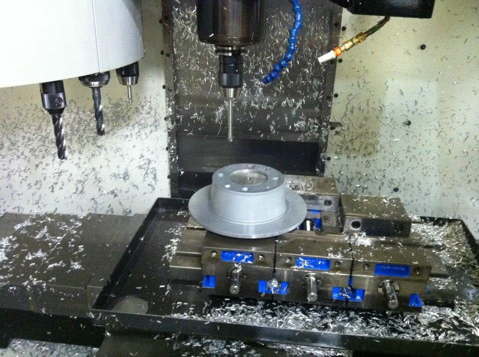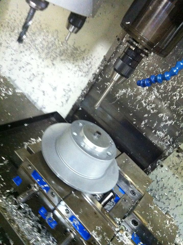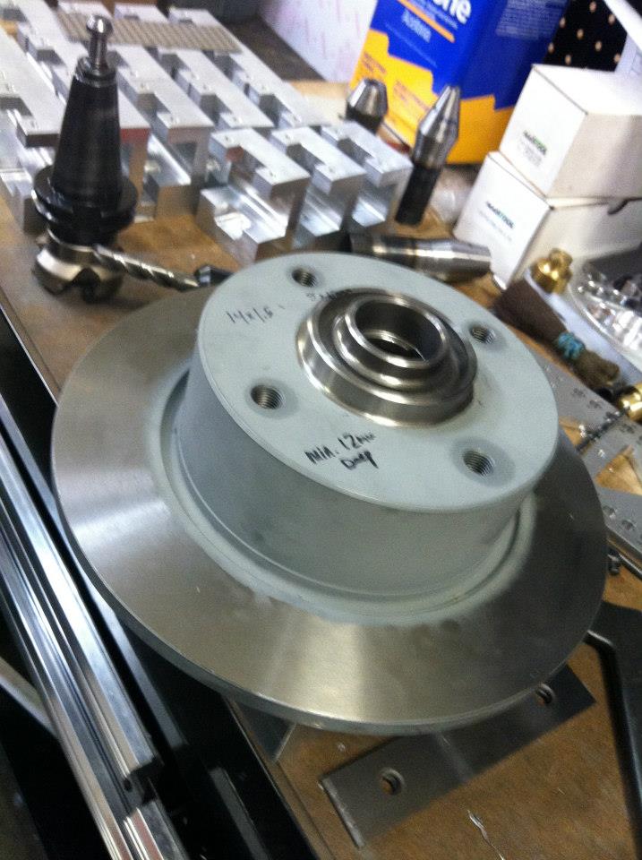 Trying to wrap this up before the end of the month. I will be billing cards today for those of you who haven't paid already. For those of you who haven't called with a payment method, please do so today. We have a few people on a waiting list so, let me know if you are backing out and now want to forfeit your order and give it to someone else. Just need to take it off the books today if that's the case. Today should be the day for the machining. We're hoping to have all of the parts done by Monday. Then installing hubs and shipping will commence. Here's a little preview: Rear Rotors waiting their turn in line on the mill: (IMG:http://www.914world.com/bbs2/uploads_offsite/sphotos-b.xx.fbcdn.net-1110-1364573930.1.jpg) The rotor is dropped onto a peg in the fixture... (IMG:http://www.914world.com/bbs2/uploads_offsite/sphotos-a.xx.fbcdn.net-1110-1364573931.2.jpg) ...then the cap is mounted to keep everything rock solid-steady: (IMG:http://www.914world.com/bbs2/uploads_offsite/sphotos-b.xx.fbcdn.net-1110-1364573931.3.jpg) Late model front rotor will get the centering ring machined off to accommodate the 5x130 Fuchs wheels. This one is being test fit onto the jig. (IMG:http://www.914world.com/bbs2/uploads_offsite/sphotos-a.xx.fbcdn.net-1110-1364573931.4.jpg) The jig for the rear hub is ready to go. The hub is dropped onto the pin and also indexed by the M6x1 mounting holes. (IMG:http://www.914world.com/bbs2/uploads_offsite/sphotos-a.xx.fbcdn.net-1110-1364573931.5.jpg) |