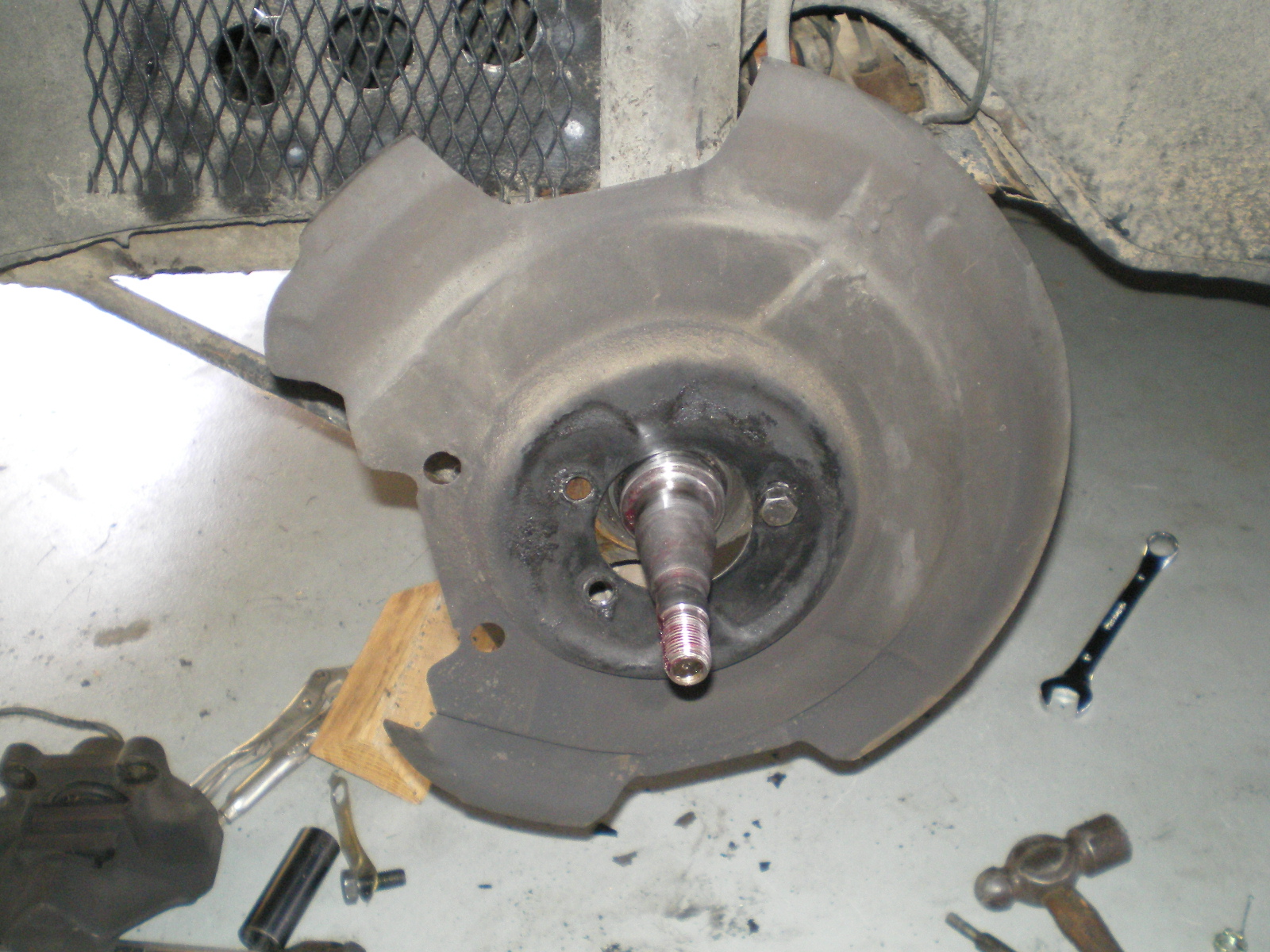 ![]() ![]() I began with the L front. I had done ball joints/tie rods, brakes, etc. previously so shocks were all that were necessary. The old shock was a blown out KYB which accounted for a noise I heard occasionally. When I dropped the new Bilstein it went 90% in and stopped. The old shock was narrow but this new one is fat and binding. Pulled it out and looked inside and found this bit of rust. ![]() Ran a 2" wire fitting brush thru it several times. I even ran a rotary file over the areas that had rust, in case the metal had raised but it still would not fit. (IMG:style_emoticons/default/stromberg.gif) ![]() I discovered that area where it bound was the spot where the brake tab is welded on. It probably took a hit there and PO replaced with these skinny shits as a go around. Anyway, my buddy Ethan had these laying around so I cleaned up the L one and I was back in business. ![]() Bought this little tool to aid in refurbishing the trailing arms. ![]() Pressing out the old bearing from the inside. ![]() And here it is from the other side exiting the arm. ![]() New poly bushings going in ![]() Final assembly of the trailing arm ![]() A few installed (less brakes) pics. Rear brake caliper rebuild is next. ![]() ![]() ![]() Attached image(s)