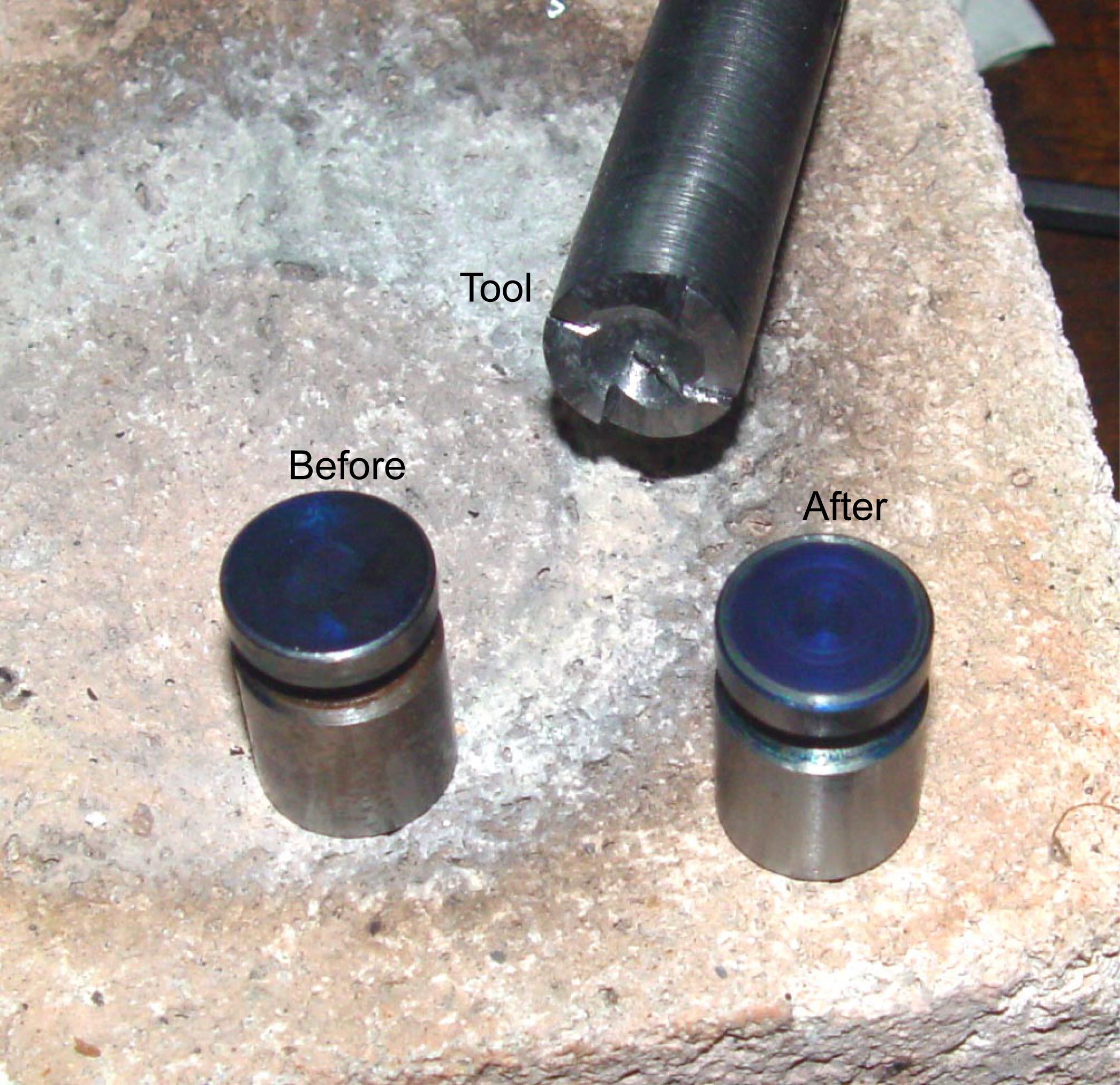Please post some pics of what you are doing. OK, I am making some progress. If the bearings are loose, this will be a bit of an extra, but that hasn't been tested yet. It is hard to show, but here is what I found: The first image shows a comparison between the Prussian blue rub off in my old worn out 2.0 and the new 2056. The pistons are identical. ![]() You can see a clear seat in the old, but you can hardly see contact with the new. In fact, there is a small rim around the chamfer where dye has transferred. OK, getting a photo of the cylinder was tough. Here is my best and it shows the problem: ![]() The green arrow shows the offending ridge running all round the circumference of the cylinder. A slightly smaller final bore perhaps? At any rate, that is what stops the piston a couple of mm short of the seat. the line between the pressure bevel and what is supposed to be the seat is shown with the other arrow. What I did was to get a piece of scrap iron. It should have been steel - I made a bad choice based on what was lying around and made a cutter at 15.9 mm. It is shown below with a before and after prussian blue test. I used grease to catch the swarf, which in my case was a very fine powder - like anti seize. At first I thought this would go quick, but it took quite a lot of turning the tool because basically the tool I made is not at all aggressive - it dulls fast and there was purposely no relief cut for the cutters. I have to rinse well, clean like the dickens and get it back off the stands to find out how things go. Since I changed two variables at once with the new pump, I will never know. What I can say is any oil that gets by the piston is back to the sump. The bores tend to wear and there is nothing to stop it but viscosity at the valve. So if as I suspect the valve wasn't sealing, I would expect what I found. Low pressure with hot oil. Pm sent on tool. Thanks |