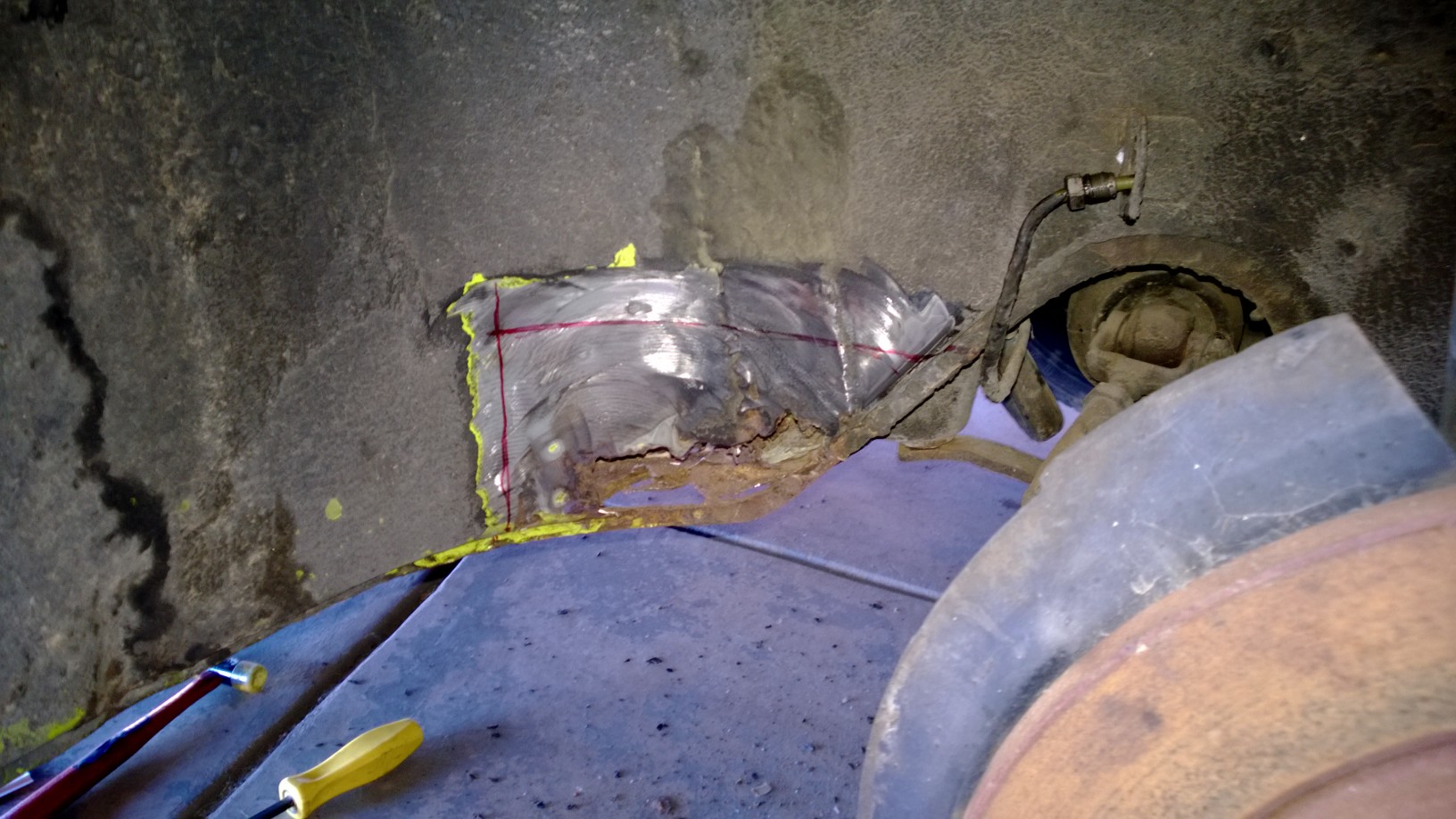 Update! Today, Ray and I tackled a bit of rust in the front fender. It took a bit more time than expected, but it came out looking decent!