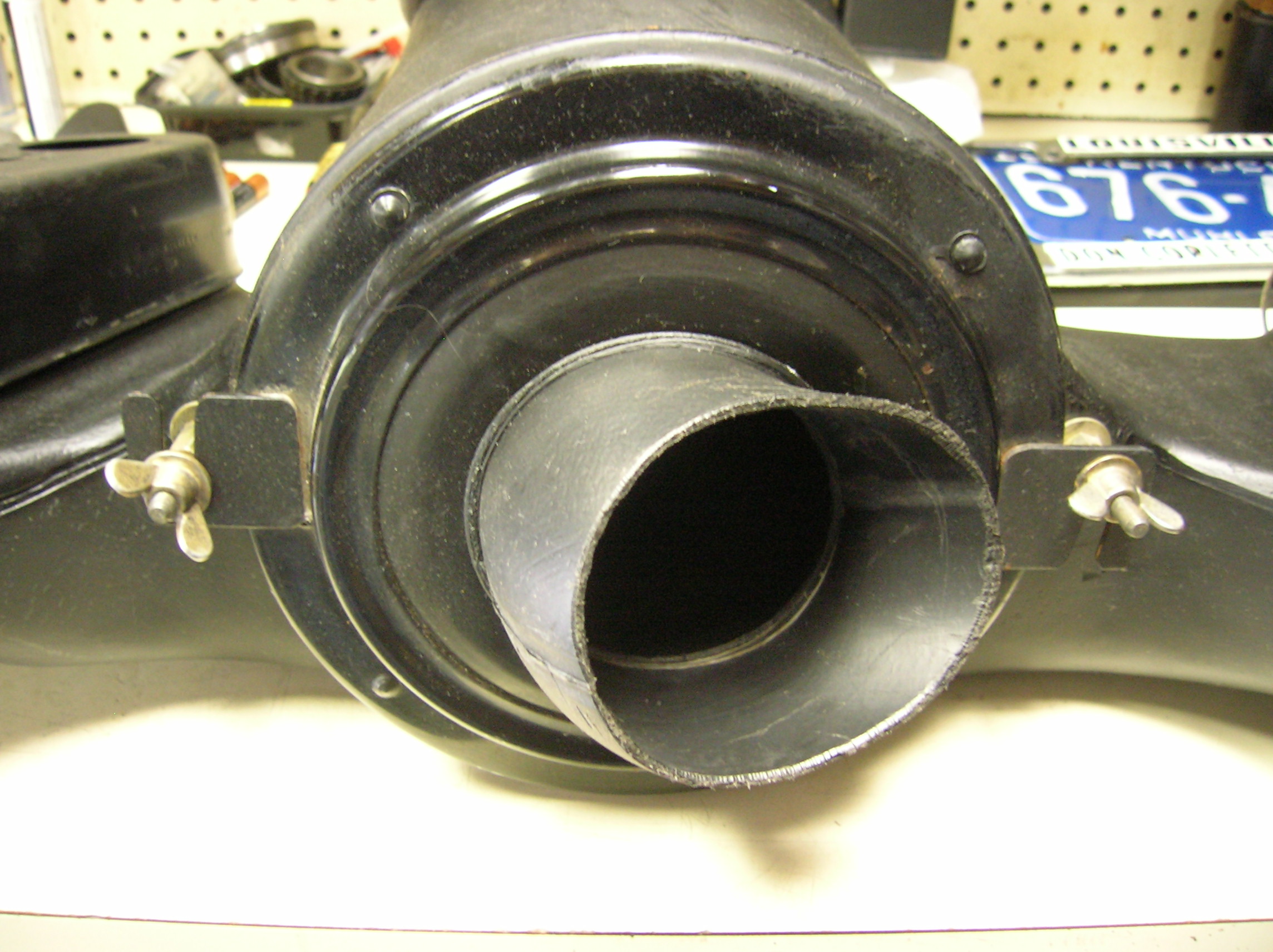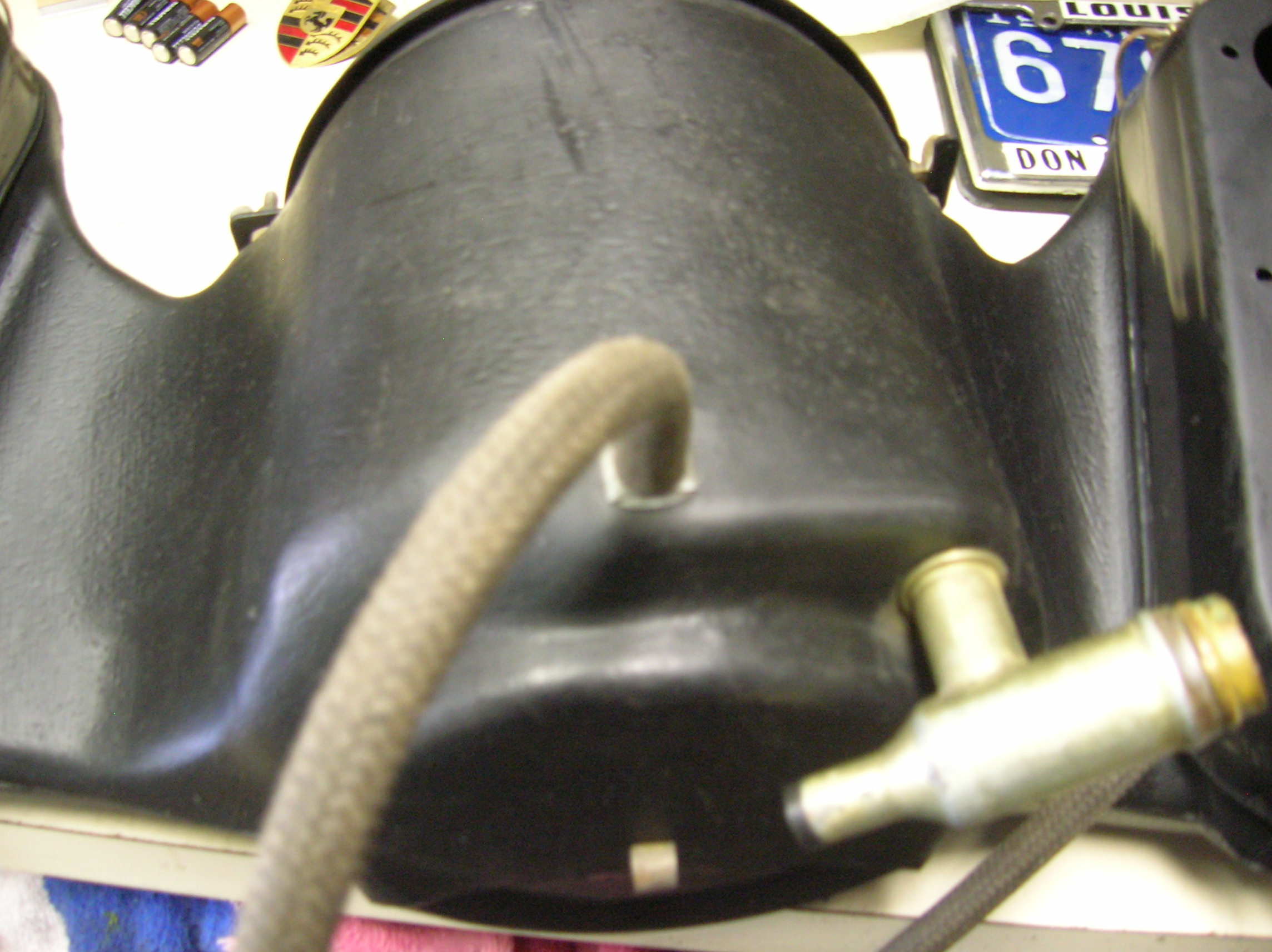 went and took a couple of shots of the air box off my 914-6 my snorkel was cut off (by a PO) long time ago...wish I could find one..anyone have one for sale?? you can see the holes for the cold start arrangement...they are plugged up right now with plastic hole plugs....it has metal studs, washers, and wing nuts for the snorkel and metal breather hose inlet... John Attached thumbnail(s) |