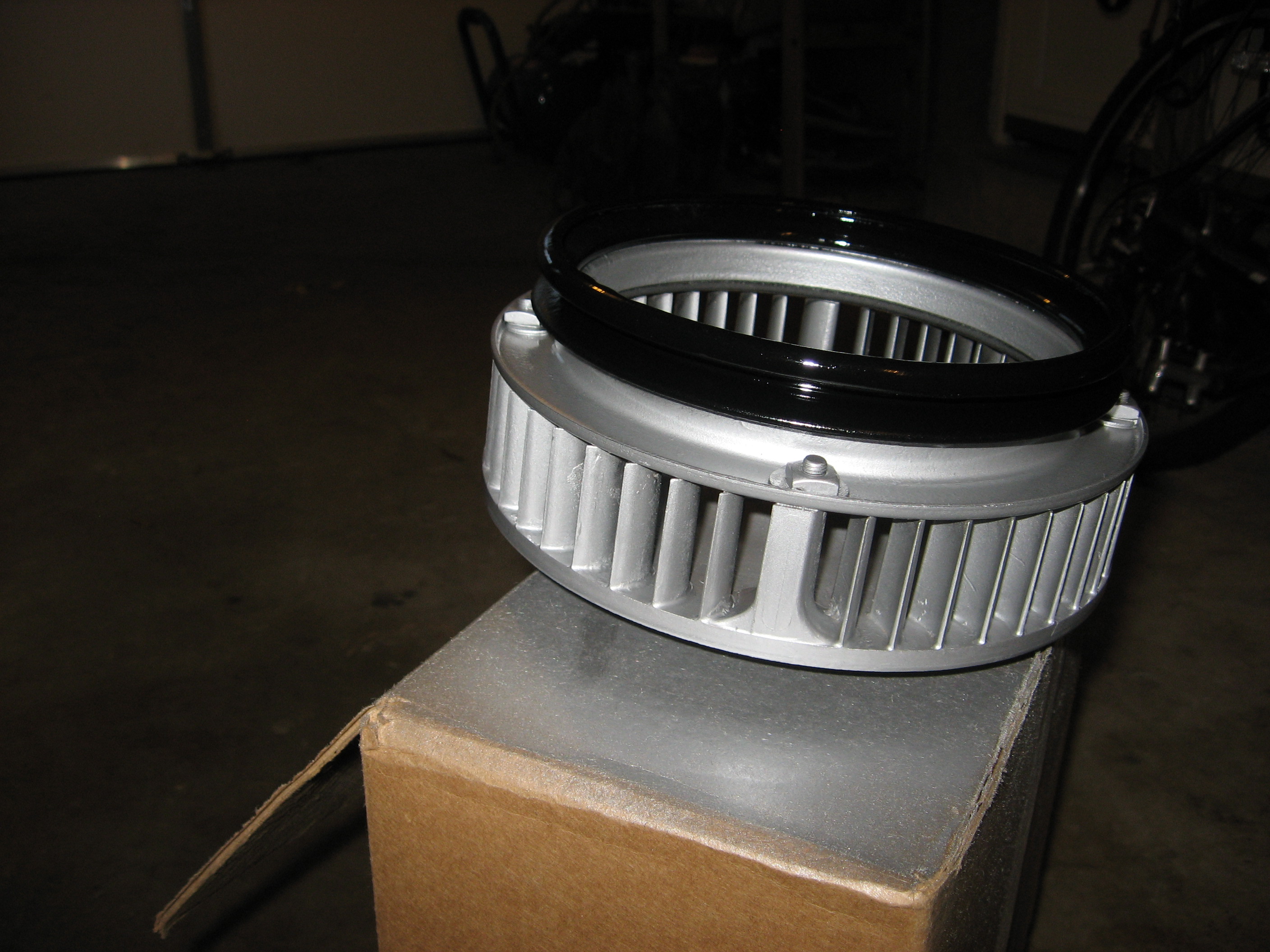 And the fan is finished being blasted and painted. The pulley metal was very rusty so I removed the rust, and between wirebrush, sandpaper and a grinding stone on my dremel and smoothed it down to metal as good as possible, then used Eastwood Rust encapsulator once that cured for a couple days, I topcoated with PJ1 case paint. After curing for 2 days I then baked it at 200 for an hour to fully cure and complete the ceramic hardening. Then painted fan housing with silver and baked. Tomorrow I hope to pick up my crankshaft remount the front bearings and gears and get back to the mechanic for balancing with all the parts.