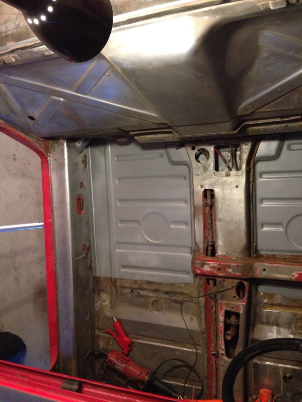 Put in another hour today removed quite a bit of floor pan getting close to trimming it. then I will finish prepping the interior and move on to the firewall I am going to bolt the tub to the cellete at our shop before I start welding.. I was talking to our Fabricator at Jerry Woods and he explained a similar way of doing it Id love to see some photos if you have some... Here is a photo update