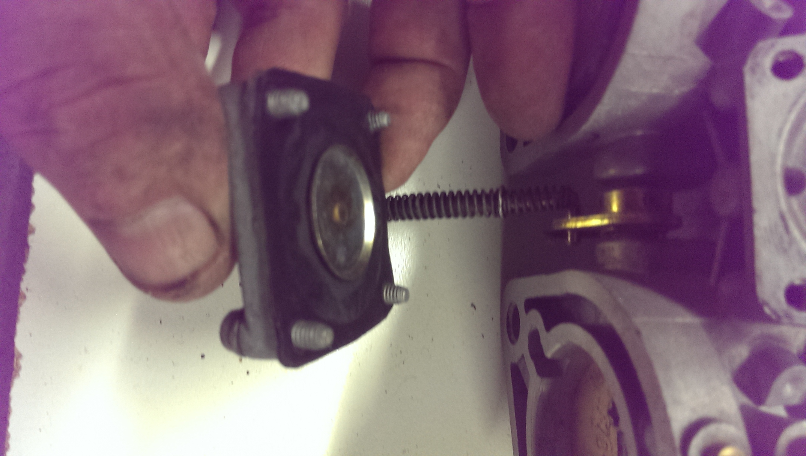 Note that there are two style of pump covers and associated diaphragms. If your carbs have and adjustable pump lever rod (pictured here) then you will use the diaphragm in the kit that only has a metal face. The one with the white button on top is used with earlier style carbs with a non-adjustable lever rod. First place the diaphragm on the pump cover. I like to thread the screws through the holes in the diaphragm first to locate it correctly and prevent the rubber from being pinched or the seal leaking upon installation. Finally, place the spring on the recess in the body and install the cover. Do not overtighten the screws. Attached thumbnail(s) |