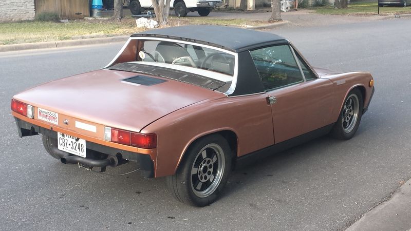 You can read all about the build here. http://www.914world.com/bbs2/index.php?sho...e++dirty++penny. Penny is currently configured with the following. DRIVETRAIN: ej20R twin turbo engine. Megasquirt ECU in factory case with factory wiring. Currently tuned at 18psi. Boost comes on late due to the TT setup. These are not currently setup sequential - but in parallel. Subaru transmission with hydraulic clutch Nissan Versa shift console for incredible ergonomics driving cable shift. SUSPENSION: 180# rear springs on Koni shocks 22mm Front torsions on 911 Carrera Boge dampers. front bushings were replaced with polygraphite (turned in a lathe - no squeaks) Kuhmo V700 tires 205-50-15 on 15x6 Rivearas. They could probably be balanced. MISC STUFF: Chassis rust was fixed by butt welded sheet metal. Chassis has Engman Kit installed. Interior painted with gray anti-skid paint and partial covered with gray Perlon. Driver's seat is carbon fiber GT3 replica Passenger seat is stock. No radio. Factory tach driven by MS ECU. Speedometer is actually a bicycle speedometer. Have a spare EJ20G engine, spare case, crank and rods. Transmission just started making a noise. Probably the infamous 5th gear input shaft bearing. New flywheel nose and release bearings. The car is fast at high rpm but will drive very docile around town. It can spin cold tires in third under boost. Asking $4500. (IMG:http://www.914world.com/bbs2/uploads_offsite/forums.pelicanparts.com-10736-1317499190.1.jpg) I will get some new pictures up tomorrow. I am going to kick myself for posting this but after a few margaritas and a potential move its just gotta happen. |
