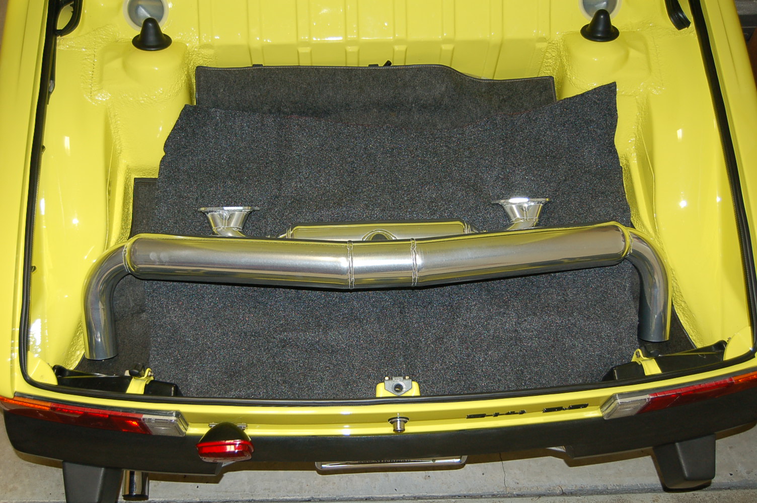 I appreciate the comments I will definitely keep trying and will send another email. Carr914 where did you pick up that custom valance? I was going to fab my old one but if I could grab one like that I'd do it? The person that was selling the Triad here in the Classifieds 6 Months ago included the Valance Guys, I have a new Triad in the power coat shop (jet hot finish) and need a dual (2) hole valance like carr914?? Can anyone tell me where to get a steel one?? I hate to cut up my good single rear valance. Tom I just picked up my Ceramic coated "Triade" muffler for my 2.0 liter 914. I'll get it installed before Memorial Day & anxious to compare the sound against my "Bursch" muffler. As soon as I hear the Triad, the Bursch will be up FS. (IMG:style_emoticons/default/w00t.gif) Still looking for someone to modify or buy a rear steel valance for the dual outlets??? Tom's Bling Mobile (IMG:style_emoticons/default/popcorn[1].gif) Attached thumbnail(s) |