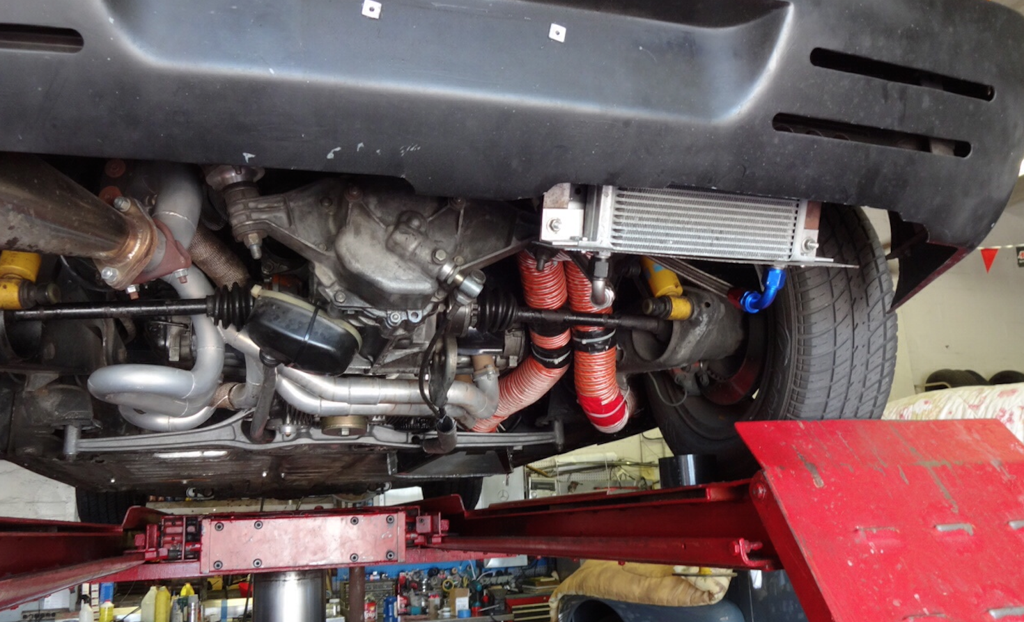 Here's what I'm running 2258cc 10.5 to 1 compression 40 webers 494 web cam type 1 oil pump mocal oil cooler 25 row mocal sandwich w/thermostat adapter accusump 2 quart Brad Penn Air-cooled oil 15-50 (5 1/2 quarts) Let me explain my set-up The oil cooler is a rear mount under the car on the passenger side rear. I made some duct work and its almost vertical to catch the most air as possible. Track conditions Sunny, low 80s, 30min sessions question 1) With that cooler I didn't expect to run in the 230f oil temps. Is 230f acceptable? question 2) I also have some oil on the top of the case /engine tin pooling. 1-2 side. It only happens under WOT. Any ideas? question 3) I never set-up an accusump and I don't like it so far. It over fills the case at shut-off. Do I have to much air in it (9lbs)? Other then my oil questions, I had a great time. Ran a 2:51. My new best time. (IMG:style_emoticons/default/smilie_pokal.gif) |