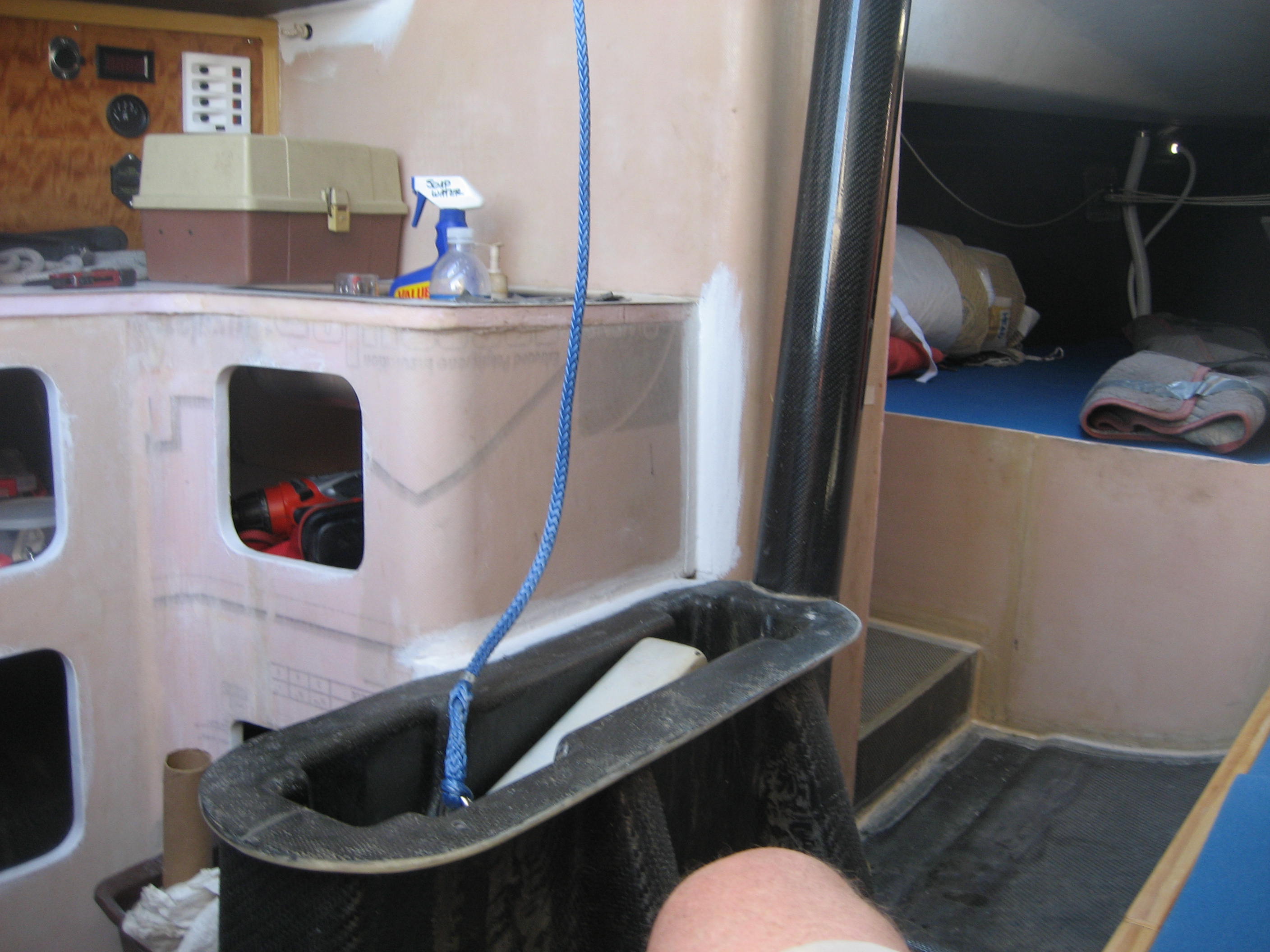 And for a first time amateur build I really think you should use polyester with Chopped strand matt. Make it resin rich and it will handle those curves and radiuses better than cloth and you are going to have to use filler anyway and do some fairing after so save yourself the grief. Epoxy is great but you need peelply if you want cloth to hold corners and that starts to get tricky. Once again good luck. Will look forward to seeing the finished job. Don't need peel ply, just plastic sheet like visqueen to get smooth surface. My experience is using epoxy and with the west system resign/hardeners & pumps you get the correct resin/ hardener mix every time. Here's example of curved surfaces done without peel-ply or plastic sheet. wet out the foam and lay fabric over and wet out again. Again 2 plys is what i have used. but wanted more structure for marine interior panels. These left with fabric print-thru, then painted |