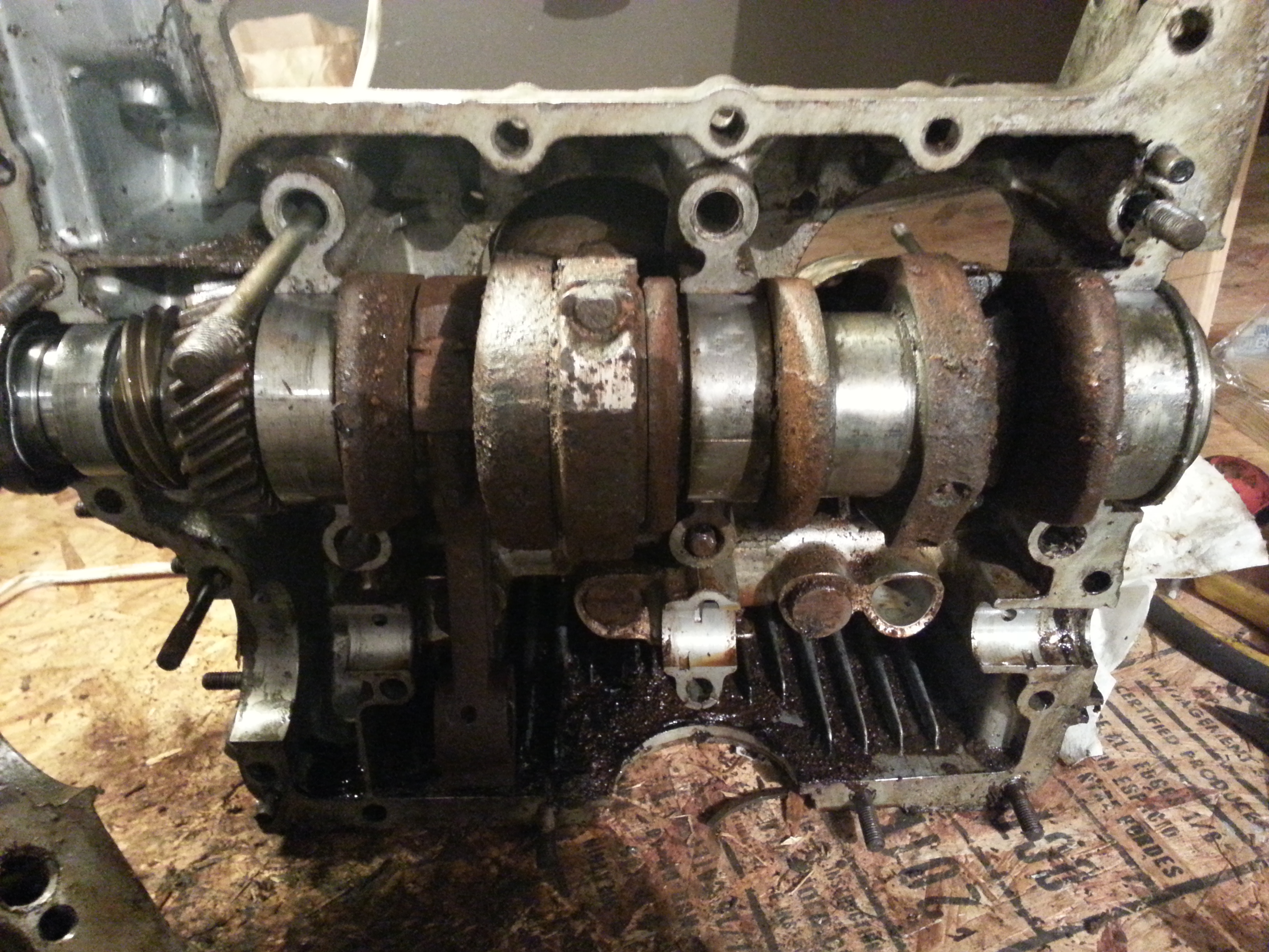 I was finally able to move the crank and begin removing the pistons. I'm to the point now where I have been able to actually split the case and begin removing internals. I have a few questions: