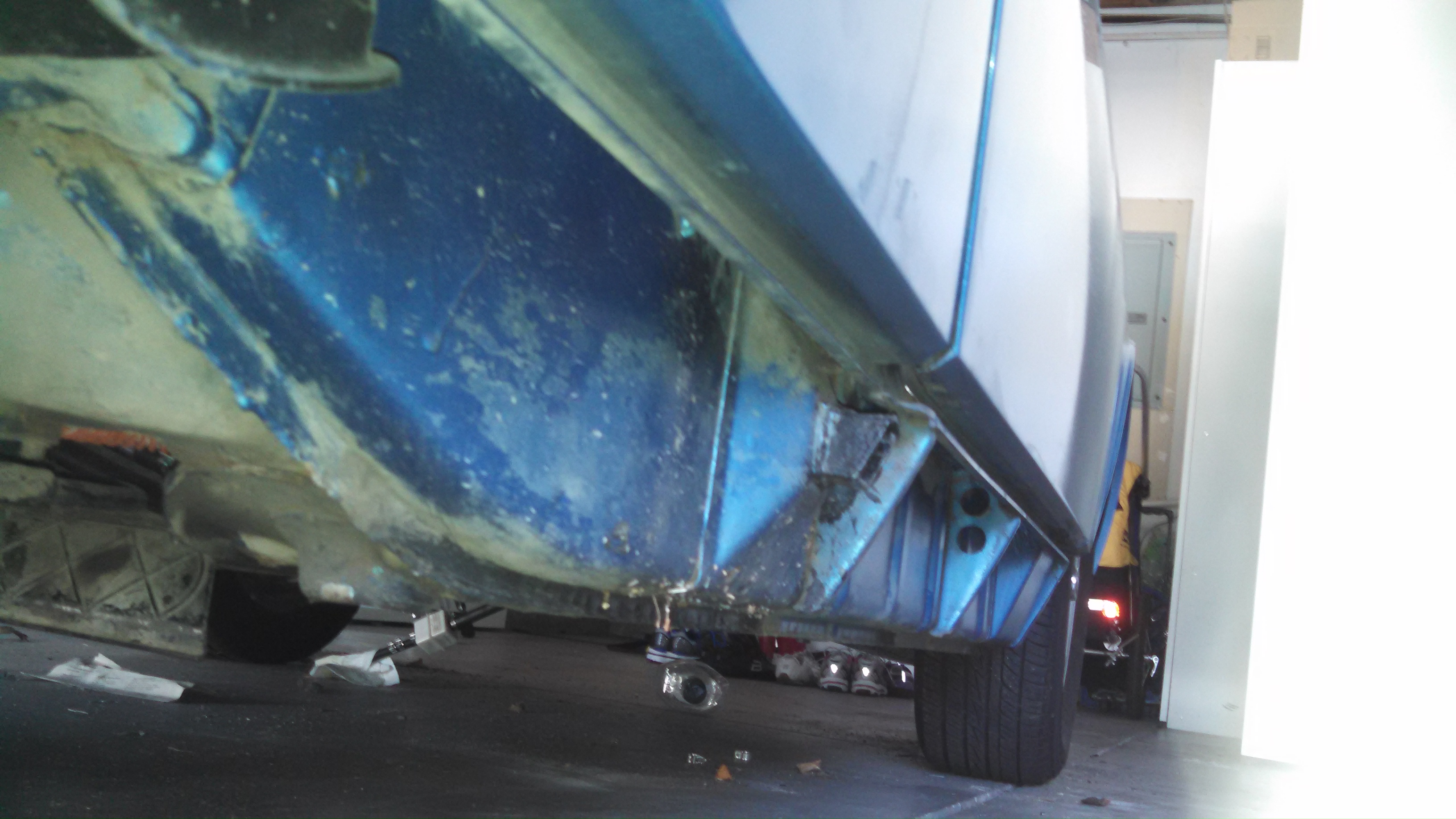 So what's my build gonna be? I'm fairly well locked in on what I want to do. I have considered /6's (and even come close to acquiring a 3.0L), but I think in the end I am going to go with a built up 2270 motor. One of the main reasons I am going that route is that I want to be able to use 1st gear. Sound strange? Sure, even though 1st is not much of anything even on a stock 2.0L, I just love the dogleg shifting from 1st to 2nd. From reading others posts here, if I go a /6 I pretty much end up with starting in 2nd all the time. So here's the build (with some decision points still): Note: This is a very high level list Staying with Narrow Body, removing the warts and antenna hole 2270 /4 with some form of FI provided by megasquirt, external oil cooler, maybe ITB's. 901 side-shift with anything that can be done to improve gearing and longevity 5-lug upgrade (suspension components and the whole bits) with Fuchs. Interior will be mostly stock, but looking to go the Getty Dash route. Sticking with original Alaska Blue Metallic (L96B) Here's my progress today: Rear bumper off: Attached thumbnail(s) |