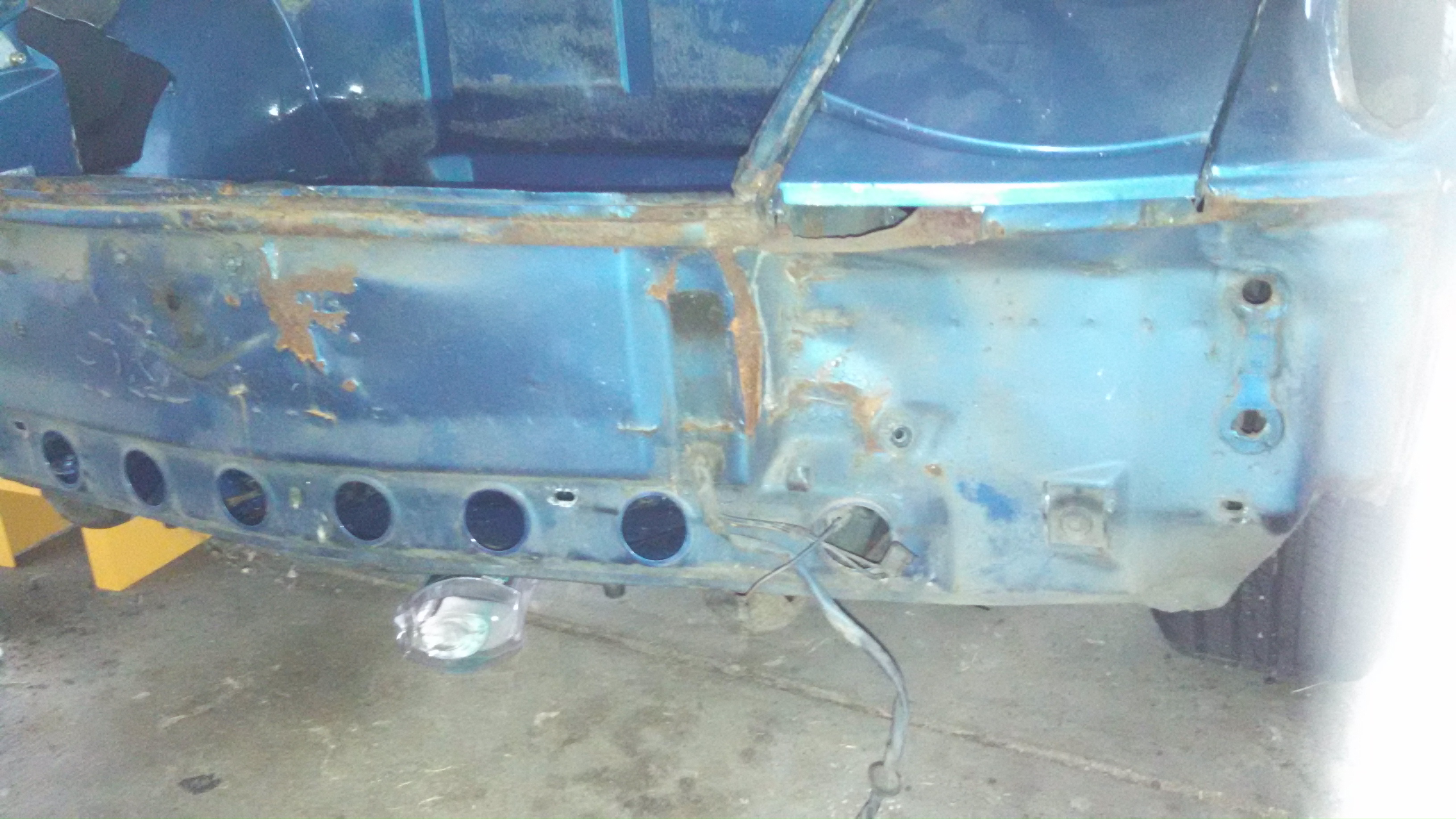 So what's my build gonna be? I'm fairly well locked in on what I want to do. I have considered /6's (and even come close to acquiring a 3.0L), but I think in the end I am going to go with a built up 2270 motor. One of the main reasons I am going that route is that I want to be able to use 1st gear. Sound strange? Sure, even though 1st is not much of anything even on a stock 2.0L, I just love the dogleg shifting from 1st to 2nd. From reading others posts here, if I go a /6 I pretty much end up with starting in 2nd all the time. So here's the build (with some decision points still): Note: This is a very high level list Staying with Narrow Body, removing the warts and antenna hole 2270 /4 with some form of FI provided by megasquirt, external oil cooler, maybe ITB's. 901 side-shift with anything that can be done to improve gearing and longevity 5-lug upgrade (suspension components and the whole bits) with Fuchs. Interior will be mostly stock, but looking to go the Getty Dash route. Sticking with original Alaska Blue Metallic (L96B) Here's my progress today: Rear bumper off: Attached thumbnail(s) |