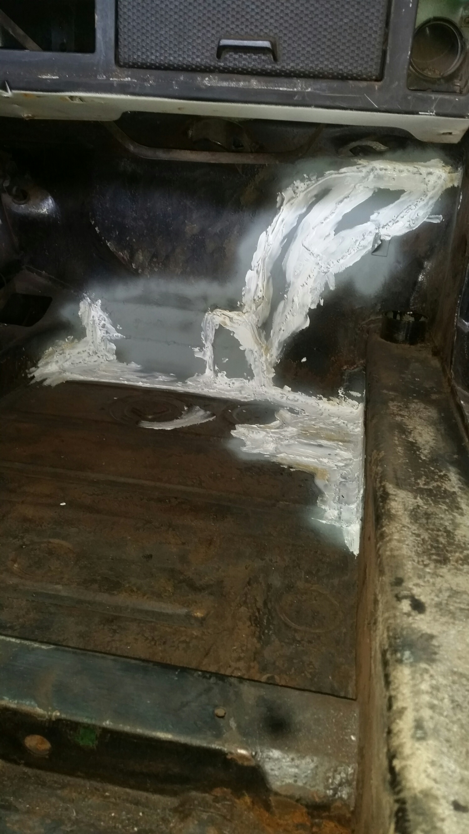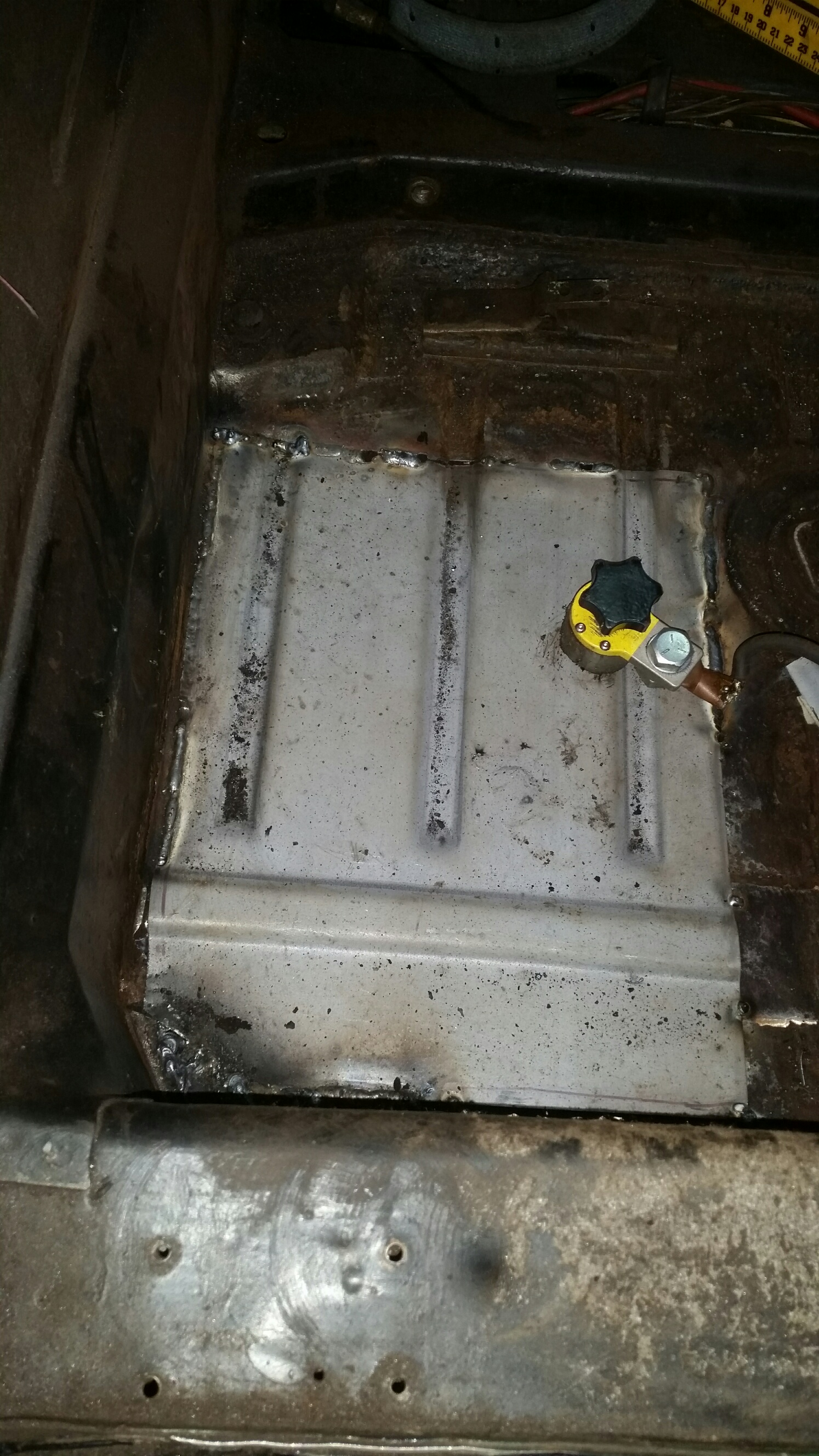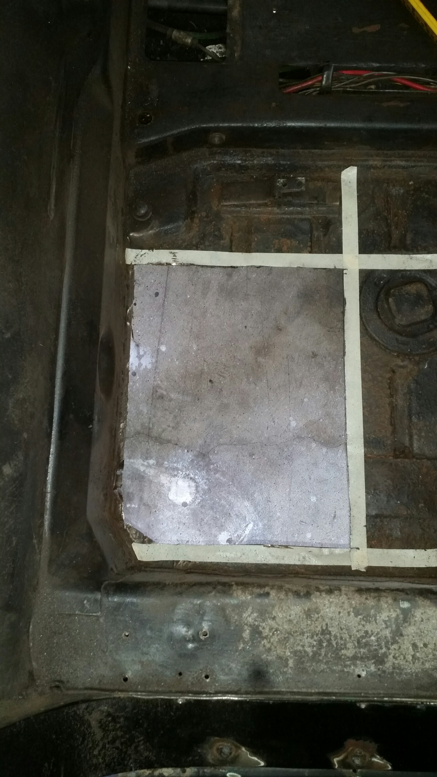 The #FML914 continues to live up to its name..I finished the passenger floor/footwell area and also made a bridge patch over the area where the car had been seamed together. Got that in, galvanized, and seam sealed.