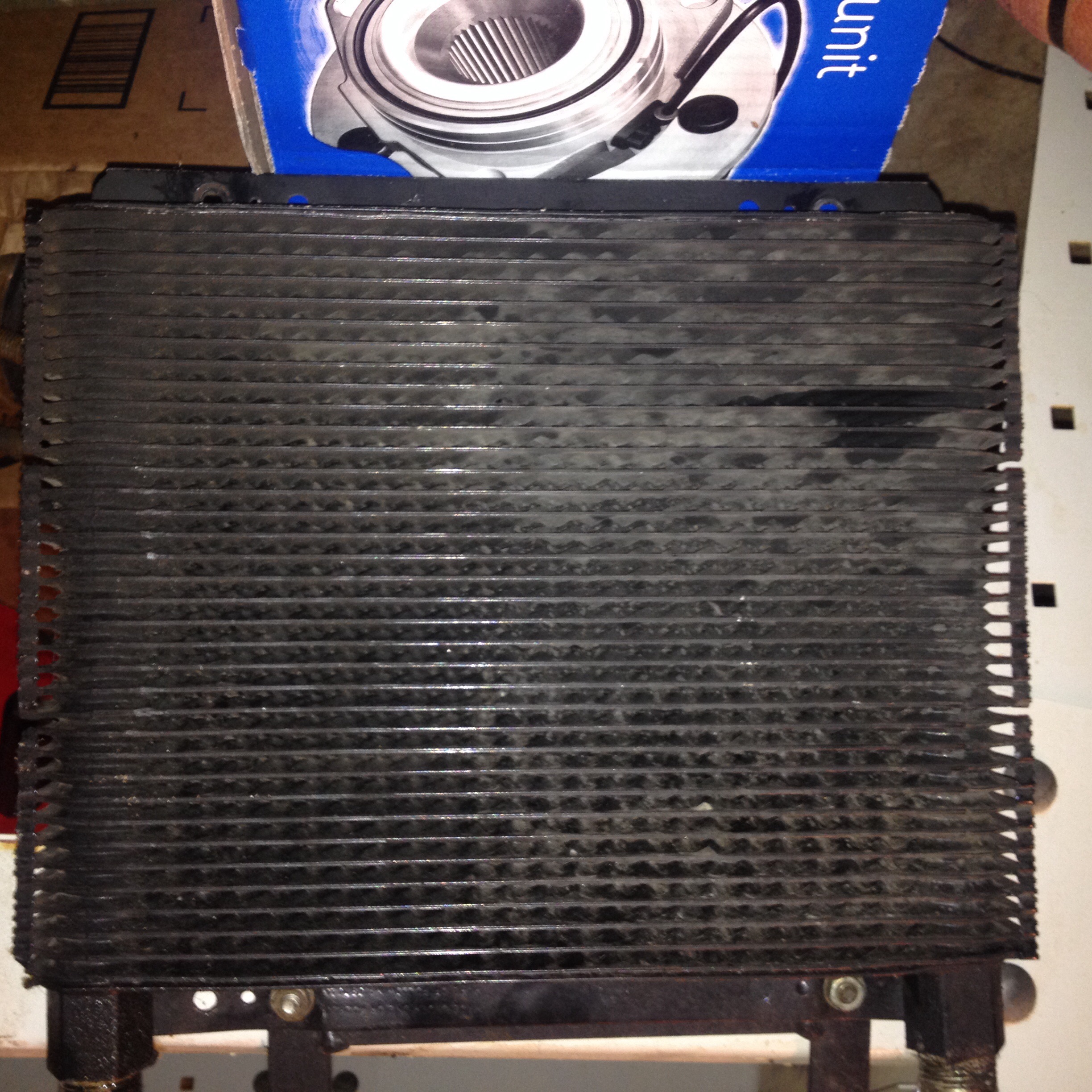 Just a quick update. I finally installed the setrab cooler but have not driven it yet. Here is a pic of the old cooler. Not sure how it even worked at all. Air can't even get thru it!!