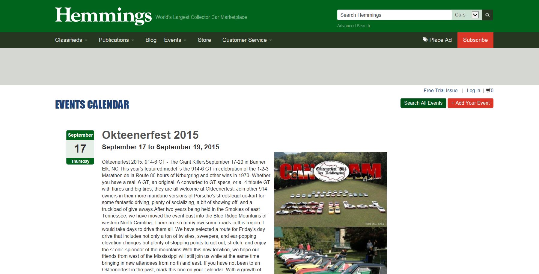 September 17-20 in Banner Elk, NC. Please note the change from original dates of 24-27. After we had set the original dates, Porsche moved Rennsport Reunion to the same weekend. (IMG:style_emoticons/default/dry.gif) With so many 914 guys headed to Rennsport, we decided to move Okteenerfest to its new date. Sorry for any inconvenience to those who may have already planned time off from work, etc. This year's honored model is the 914-6 GT in celebration of the 1-2-3 Marathon de la Route (86 hours of Nürburgring) and other wins in 1970. Whether you have a real -6 GT, an original -6 converted to GT specs, or a -4 "tribute" GT with flares and big tires, they are all welcome at Okteenerfest. Join other 914 owners in their more mundane versions of Porsche's street-legal go-kart for some fantastic driving, plenty of socializing, a bit of showing off, and a truckload of give-aways. After two years being held in the Smokies of east Tennessee, we have moved the event east into the Blue Ridge Mountains of western North Carolina. There are so many awesome roads in this region it would take days to drive them all. We have selected a route for Friday's day drive that includes not only a ton of twisties, sweepers, and ear-popping elevation changes but plenty of stopping points to get out, stretch, and enjoy the scenic splendor of the mountains. With this new location, we hope our friends from west of the Mississippi will still join us while at the same time bringing in new attendees from north and east. If you have not been to an Okteenerfest in the past, mark this one on your calendar. With a growth of over 65% in both attendees and 914s present from 2013 to 2014, we expect 2015 to be HUGE! In addition to the driving, Okteenerfest will feature plenty of good eating, an awards ceremony, tons of give-aways from the most awesome vendors, a Peoples Choice Car Show, and some of the nicest people you will ever meet gathered in a single place -------IMPORTANT LODGING INFORMATION------- Best Western Mountain Lodge - Banner Elk 1615 Tynecastle Hwy, Banner Elk, NC 28604 Phone: 828-898-4571 • We have 50 rooms blocked for Okteenerfest - all together toward the back of the building. • Room rates are $79 Thurs, $99 Fri/Sat plus tax. • Rooms will be under "Okteenerfest". • A wash station will be available and every registrant will get a towel to use for their car! • Breakfast is free each morning. EVENT REGISTRATION IS CLOSED. (IMG:style_emoticons/default/type.gif) Join the Okteenerfest mailing list or LIKE us on Facebook for quickest access to information as it becomes available. |