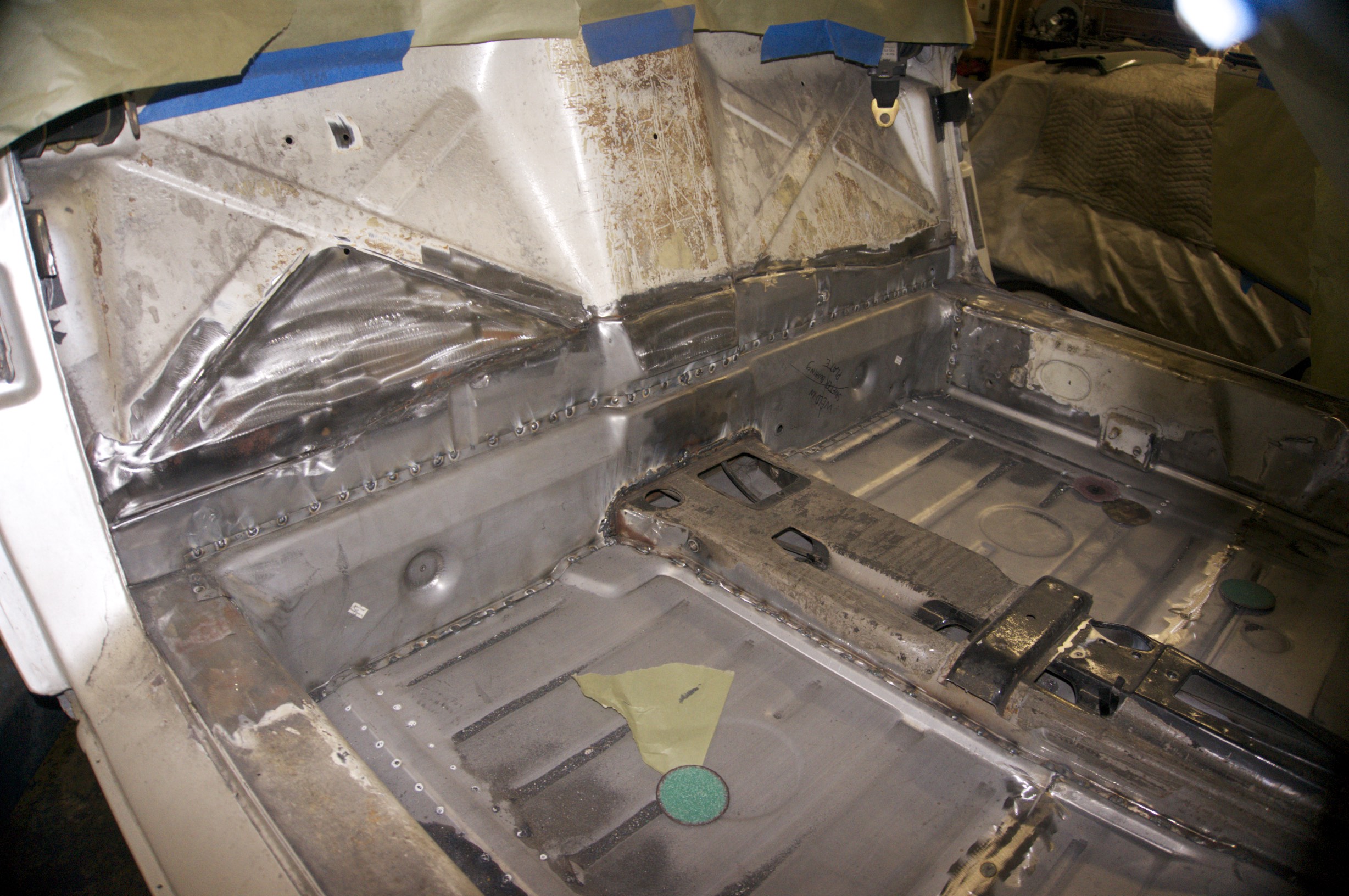 When I first looked this car over I was so excited about getting it I didn't look as thoroughly as I should have. The cost of excitement I suppose... Although what I am about to show you isn't nearly as bad as some of the amazing restorations I have seen on this site, I still feel it is necessary to show you what I am dealing with! My hopes are that I can be pointed in the right direction. I am partially embarrassed to even show these pictures as the rot is minimal by comparison to what I've seen some members work with... here goes nothing... all the interior removed: (IMG:http://www.914world.com/bbs2/uploads_offsite/i98.photobucket.com-13631-1432590830.1.jpg) (IMG:http://www.914world.com/bbs2/uploads_offsite/i98.photobucket.com-13631-1432590831.2.jpg) (IMG:http://www.914world.com/bbs2/uploads_offsite/i98.photobucket.com-13631-1432590831.3.jpg) (IMG:http://www.914world.com/bbs2/uploads_offsite/i98.photobucket.com-13631-1432590831.4.jpg) seat mount is completely gone: (IMG:http://www.914world.com/bbs2/uploads_offsite/i98.photobucket.com-13631-1432590832.5.jpg) Just behind the passenger seat... directly over the jack mount area: (IMG:http://www.914world.com/bbs2/uploads_offsite/i98.photobucket.com-13631-1432590832.6.jpg) Same area as from the previous pictures only look from under: (IMG:http://www.914world.com/bbs2/uploads_offsite/i98.photobucket.com-13631-1432591623.1.jpg) nearly completely separated from the top of the tunnel: (IMG:http://www.914world.com/bbs2/uploads_offsite/i98.photobucket.com-13631-1432590832.7.jpg) Nemi |
