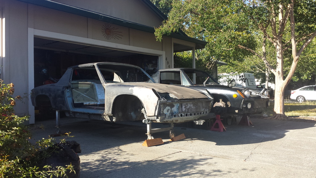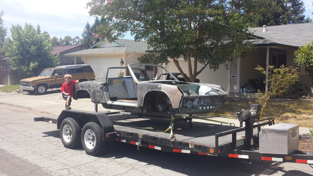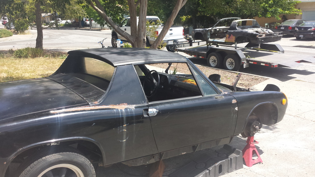 Well after the 3 longest weeks I've ever waited the new to me 73 914 from Mark at Original Customs is now resting at its new home in Rincon Valley! Made pretty much of a day of it. As with all things on a tight schedule things did not work out as they were originally planned. One of the nice surprises with this 73 was Mark agreed to throw in some 911 parts so I can have a 5 lug conversion. Unfortunately with the move some things were just not available for us to mount the suspension and make the tub a roller with the 15" Cookie Cutters that came as part of the deal. That didn't stop Mark though... he through in one of his custom built tub rollers to make things easier! Now moving the tub around will be easy! Snapped a few pictures of the tub on the trailer after getting home earlier today. Enjoy (IMG:http://www.914world.com/bbs2/uploads_offsite/i98.photobucket.com-13631-1438567777.1.jpg) (IMG:http://www.914world.com/bbs2/uploads_offsite/i98.photobucket.com-13631-1438567777.2.jpg) My son might be happier than I am over this purchase! I'm getting him into classics early. (IMG:http://www.914world.com/bbs2/uploads_offsite/i98.photobucket.com-13631-1438567777.3.jpg) One might say the 74 looks a bit gloomy seeing its replacement making its way next to it.... (IMG:http://www.914world.com/bbs2/uploads_offsite/i98.photobucket.com-13631-1438567777.4.jpg) (IMG:http://www.914world.com/bbs2/uploads_offsite/i98.photobucket.com-13631-1438567778.5.jpg) (IMG:http://www.914world.com/bbs2/uploads_offsite/i98.photobucket.com-13631-1438567778.6.jpg) I will try and get some up close and personal pictures of the 73 over the next few days. Right now I just need to sit back and make some good notes. Figure out where I want to start... (IMG:style_emoticons/default/popcorn[1].gif) I would be lying if I said I wasn't a little overwhelmed. Anyhow, your thoughts and comments on where to begin are welcome and greatly appreciated. Cheers Nemi |