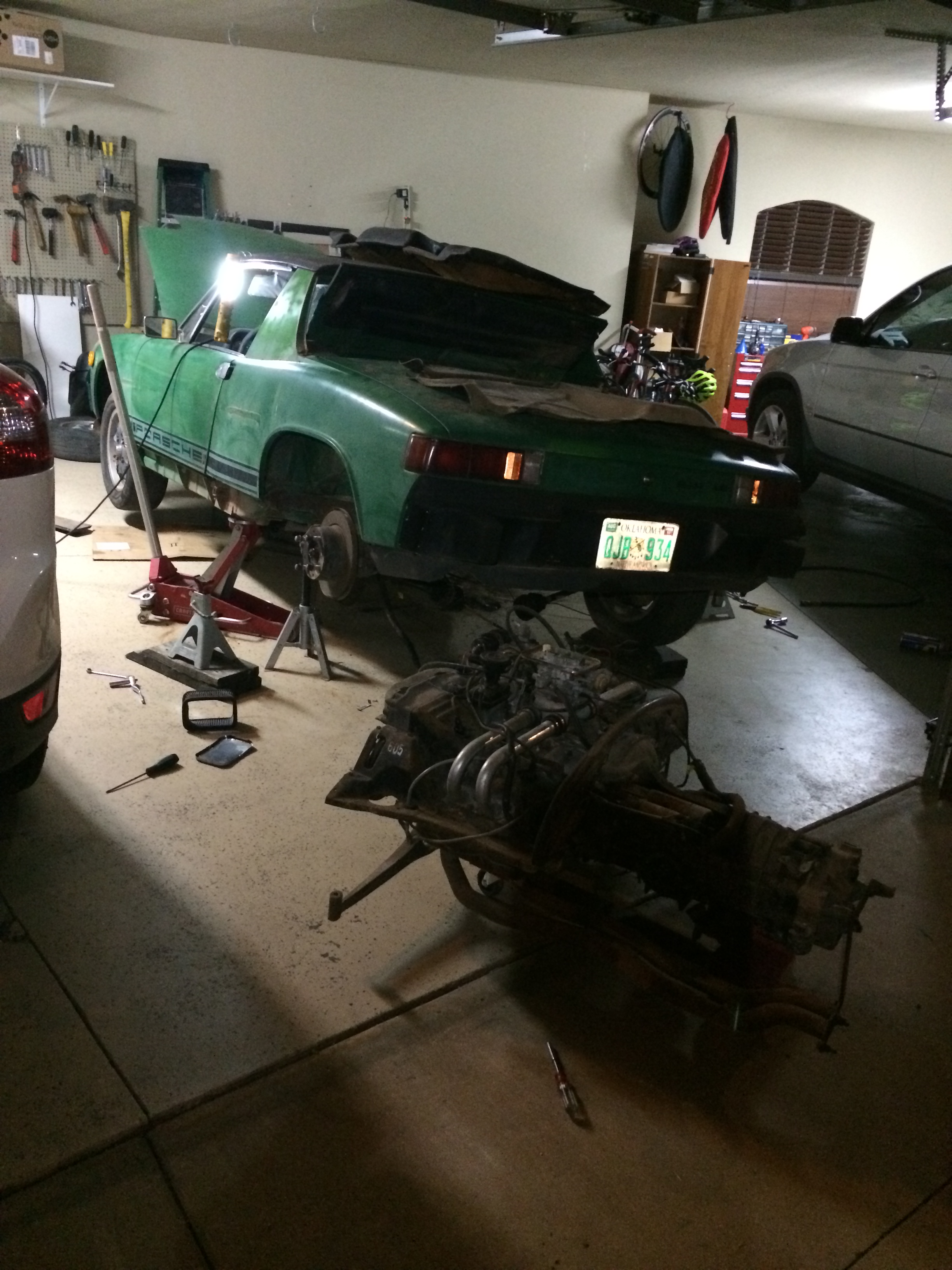 Newbie checking in; been tinkering with & racing cars for 20 years; lots of BMWs and Porsches (944, 996, 912, 911SC). My newest project is this 74 914 1.8; picked it up for $1500US. Looks like it has factory air conditioning and option wheels. From my initial look it appears complete and almost rust free; it hasn't been registered for almost 20 years, so probably hasn't run for that long either. Cool thing is the car still has the ORIGINAL purchase invoice from Forest Lane Porsche in Dallas, Texas. EFI has been replaced by some sort of carb setup. This will be my first experience with a carb engine. Any suggestions on how to get the motor going? I need to make sure it turns by hand first. Anyhow, this board looks like a wealth of knowledge and I will be reading often. (IMG:style_emoticons/default/beerchug.gif) ![]() ![]() ![]() ![]() ![]() |