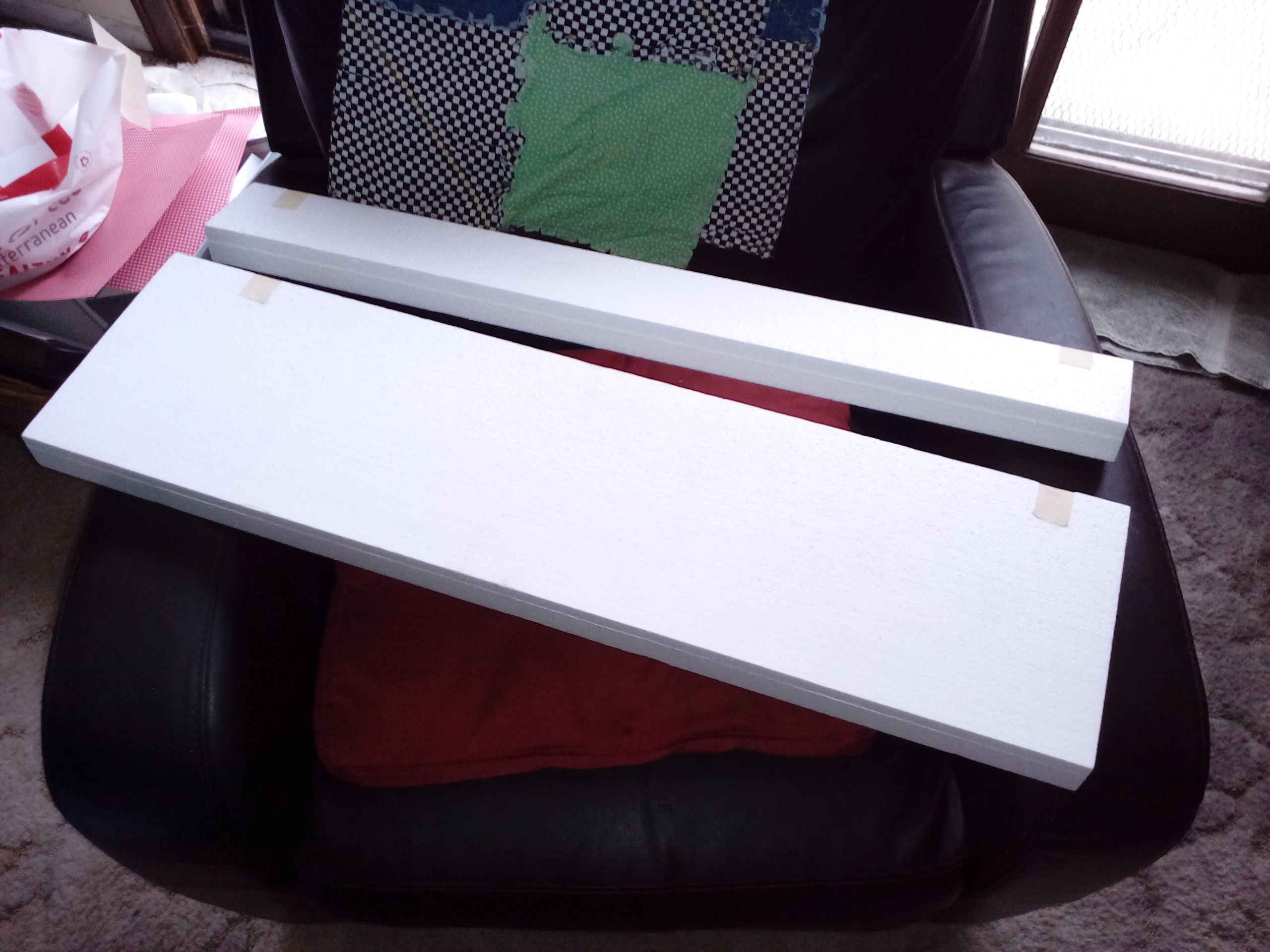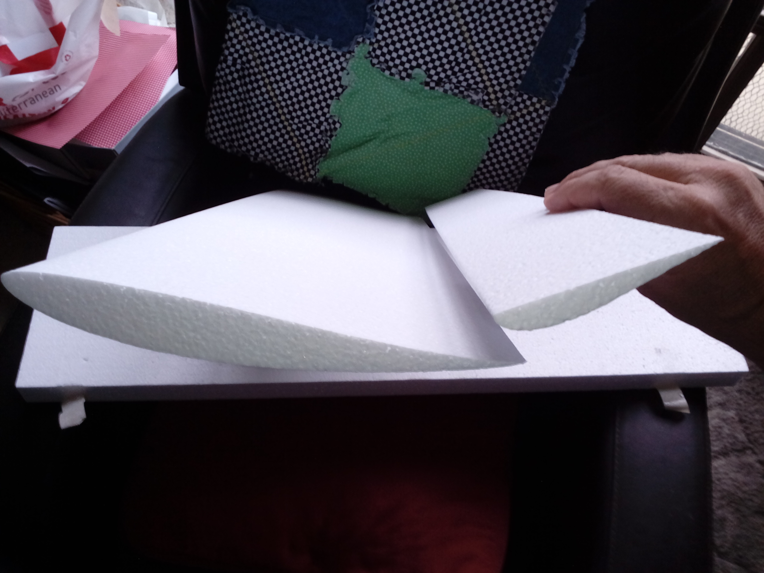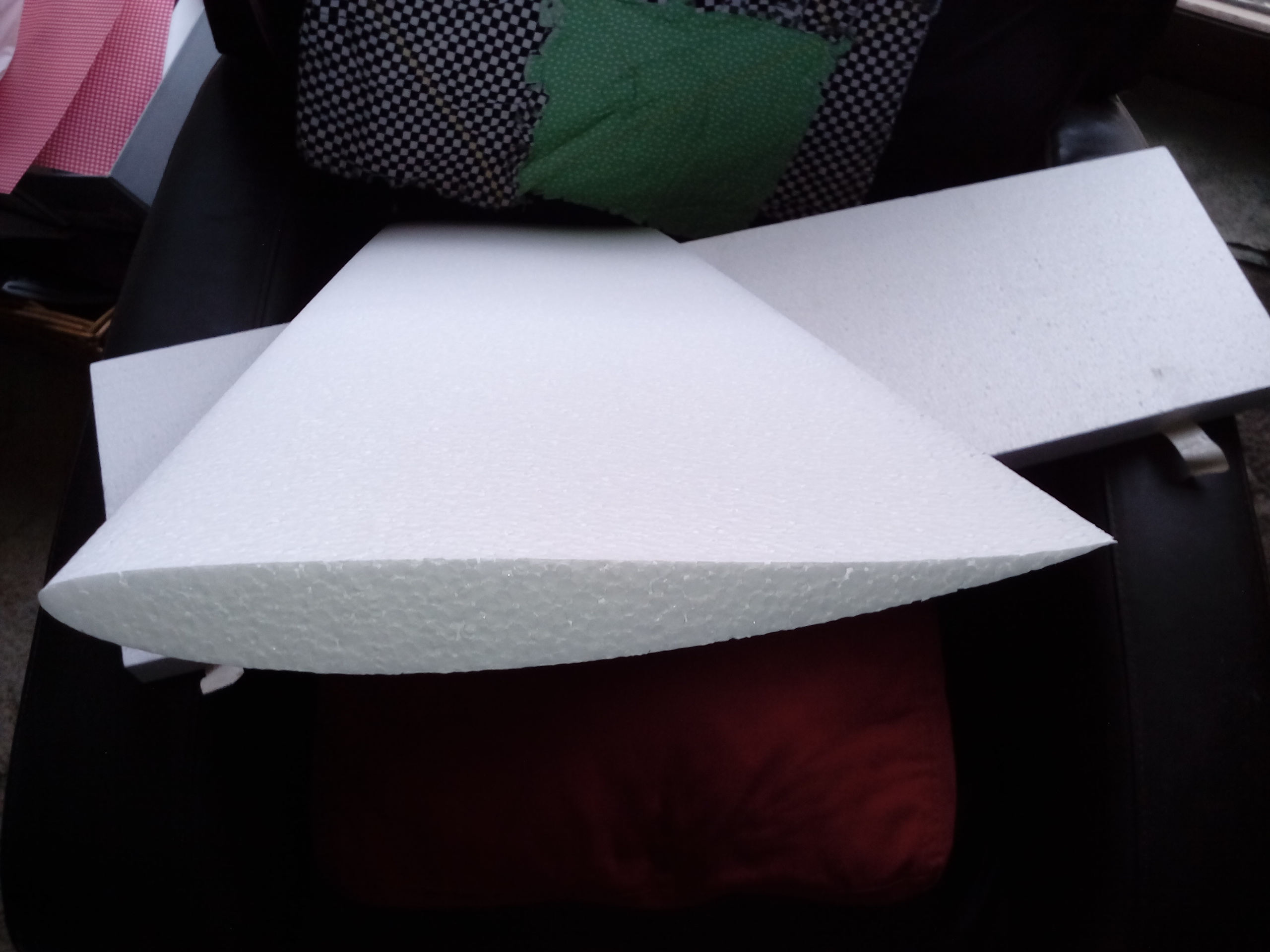 For those unfamiliar with foam wing cores, the actual cores are shipped in the blocks they are cut from. The extra pieces are sort of "negatives" of the wing core (Some folks call the leftover bit wing beds). They not only protect the cores during shipping, but are awful handy when it come to skinning or glassing. The pics show the main wing and flap cores. There are two of each and they will be joined end-to-end prior to skinning to create a full span wing and flap. I tried to hold the flap core in sort of the position it will take, you get the idea... Mugs Attached thumbnail(s) |