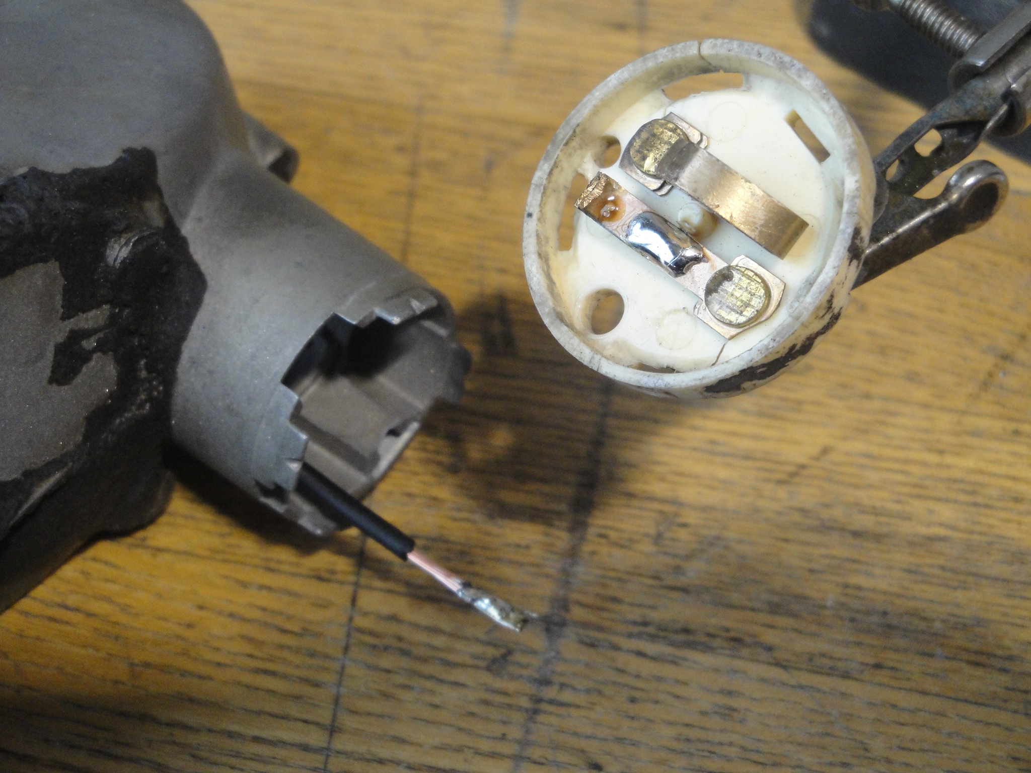 With the 57 terminal cut as shown, and your wire cut and striped back just slightly, use a soldering iron to tin both. Its critical. In the photo here I cut back to much insulation. I redid this but did not re take the photo. You want insulation down right to the solder joint. If you don't, it will cause an internal short.