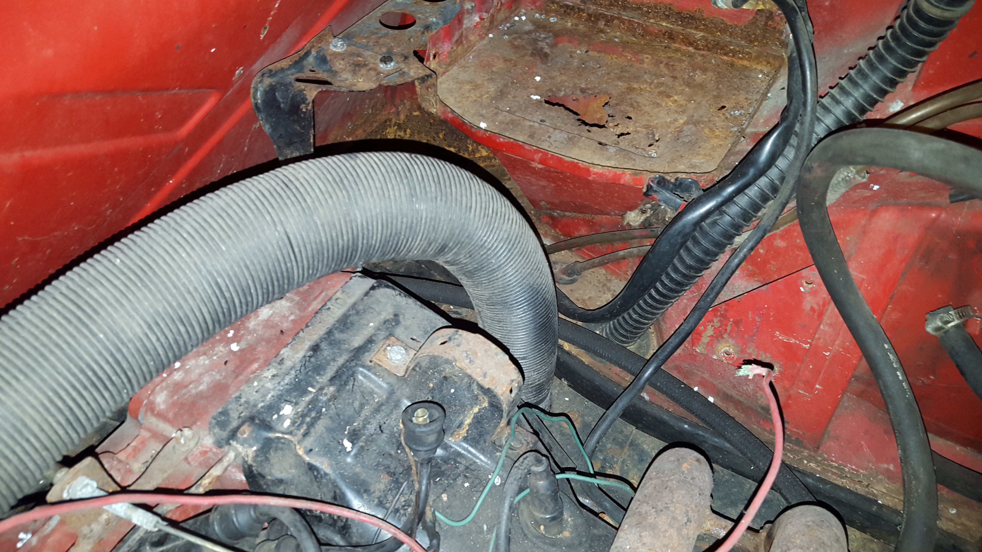 Here's the important picture. Seems to be a little bit of surface rust those pretty solid when I started poking at it underneath the battery tray. Car was purchased in 78 with 38000 miles on it. The woman who owned it paid $100 a month for 23 years to keep it in dry storage.
