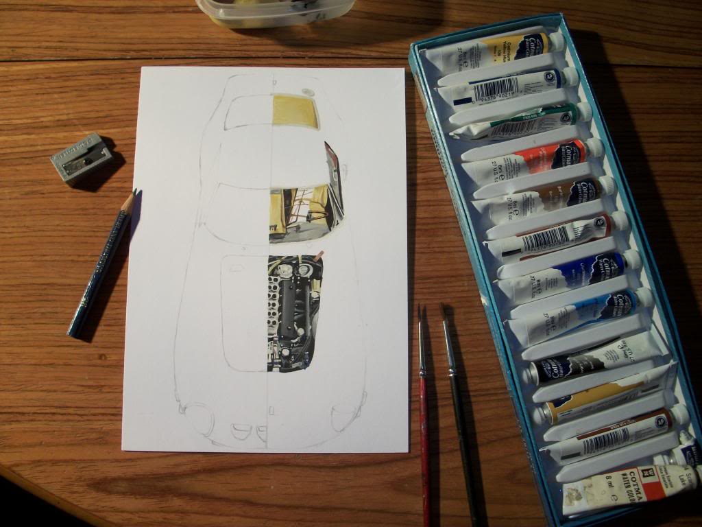 Darren, Thats awesome! Do you illustrate professionally? No Andy, I’m the Technical Manager for a bespoke engineering (Imagineering) company. I was always good at anything to do with my hands. I would go as far as saying I was a bit of a child genius geek. I excelled past my young years. I was the kid who was always being beaten up, as kids my age just didn’t do or couldn’t do what I could and didn't understand me. By 12 I was exceeding 18 year olds and by 13 I was so hungry to learn that my high school tutors didn’t know where to go as I’d exhausted their abilities to teach me. Academically I struggled and practically I ended up getting bored with lack of progress. This was the 1970’s so I was just told to tone it down and act normal for my age! Drawing and sketching was something I could just do…don’t know why or how, I just did it. It’s almost like some form of autism. The sketches for Joe are just 2 minute doodles on a train. I was told to pack in drawing and art as it wasn’t “a mans job” and was guided into the Armed forces to “toughen” me up. The art went underground and I concentrated on engineering. From time to time I used to enjoy a bit of automotive art. It appealed to my technical as well as artistic side but I hadn’t done any for years. My OCD type autism means I get very anal about stuff being right, pushing myself to see how far I can go. Here’s a little A5 size picture (only A5 cos that’s the bit of paper I had to hand in a panic) that I did a few months ago, I’d not painted in 20 years, after recovering from a minor stroke, I needed to prove to myself that I hadn’t lost the ability to do detailed art. I had a real panic attack after losing my sight during the stroke…. The images on your screen are larger than real life so you can really get an idea of scale from the pencil and sharpener! (IMG:http://www.914world.com/bbs2/uploads_offsite/i265.photobucket.com-18255-1456441025.1.jpg) (IMG:http://www.914world.com/bbs2/uploads_offsite/i265.photobucket.com-18255-1456441025.2.jpg) (IMG:http://www.914world.com/bbs2/uploads_offsite/i265.photobucket.com-18255-1456441025.3.jpg) I gave the picture away to a drummer friend of mine, he plays in a small band called Pink Floyd. Joe, Sorry to hijack your thread slightly. The Darkside Turning doodles are kindergarden stuff. I could do you much better if you wanted. |
