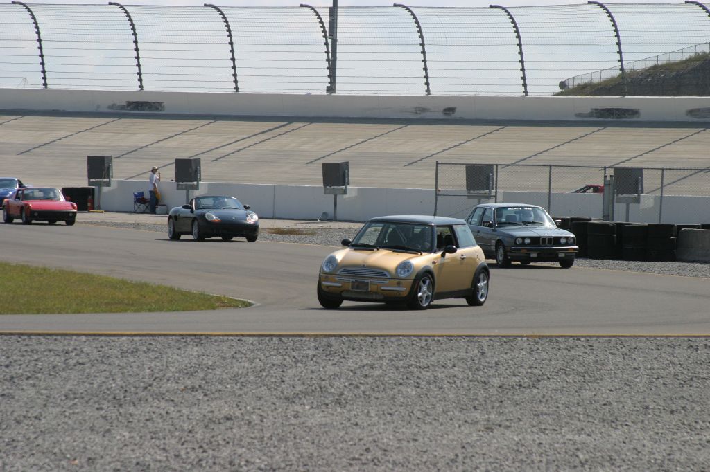 BMW is playing on the Mini's history by using Phil Wix (who used to be a factory driver for Mini back in the 1960's and was even the stunt driver in the red Mini in the original The Italian Job) to put on driver's ed events at tracks around the country. He recently moved to Nashville and put on his first school at the Nashville Superspeedway’s combination oval and road course. In addition to several Minis in attendance, the school also had the local Corvette club and the Nashville PCA bring their cars to the track as well. I will try to attach some pictures of my 914 in action over the weekend.