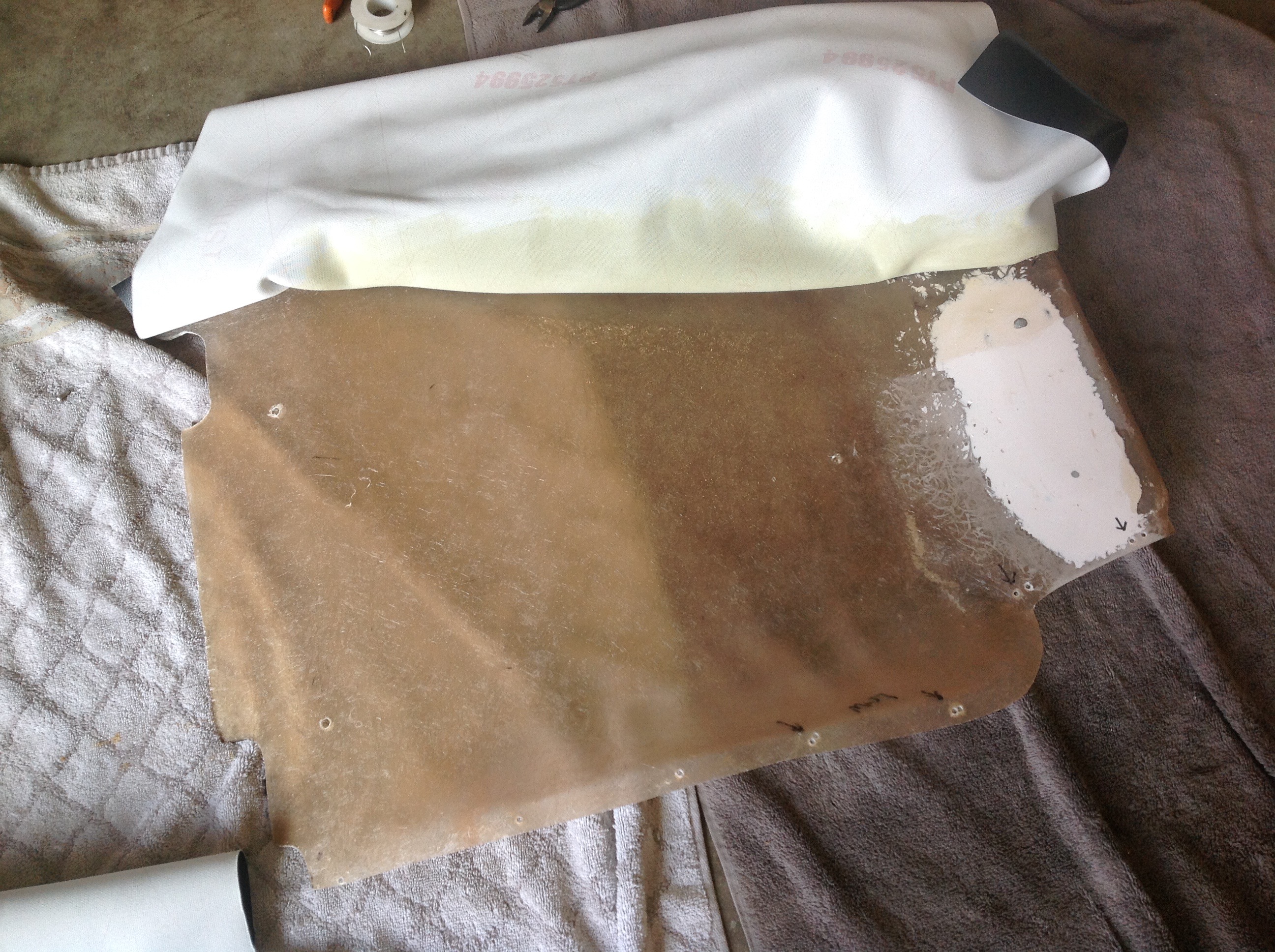 We move on to gluing down the field. Note the texture of the fiberglass that translates to the vinyl back pad behind the seats. This was an unknown when I started the project. The smooth side of the fiberglass support pieces is on the back, not the front. While this probably provides more adhesion for the vinyl, some may not like the aesthetic of the blown in fiberglass. Of course, next time I could spend another few hours with a DA sander smoothing everything out.... Attached thumbnail(s) |