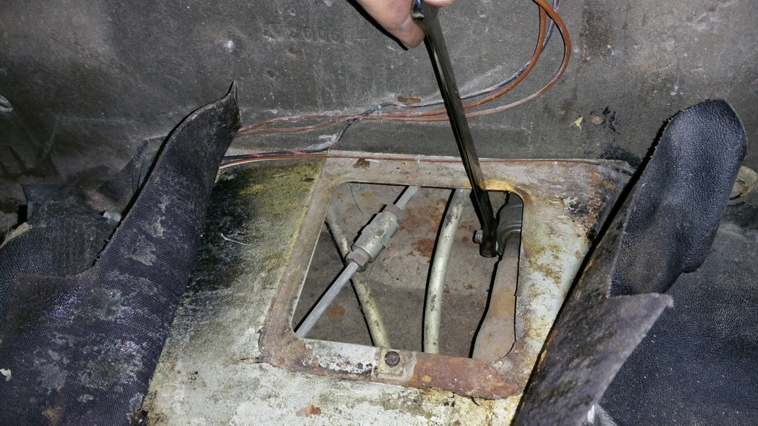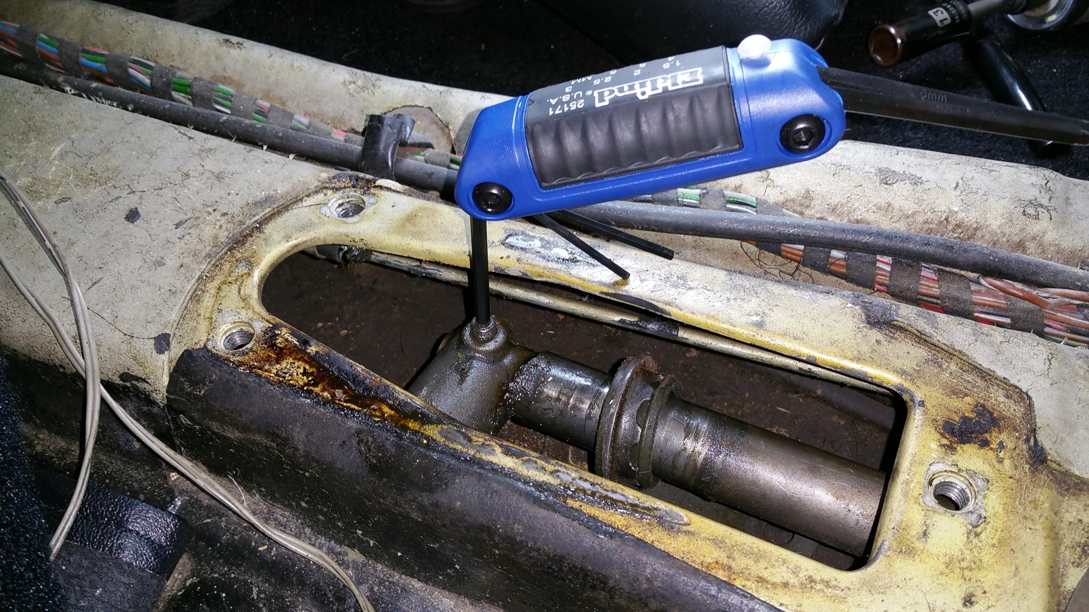 Next I loosened the connection between the two shift rods in the access panel.