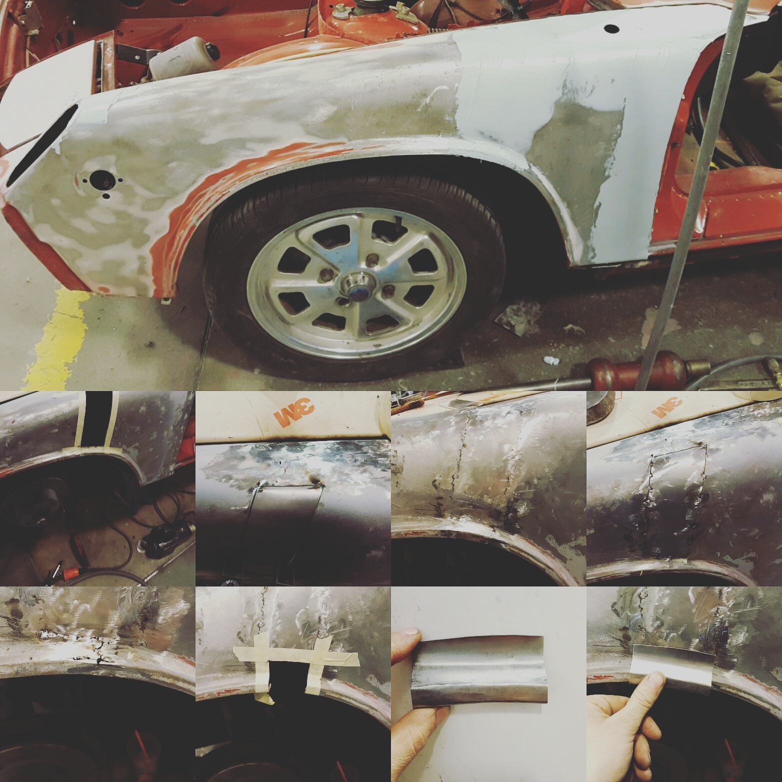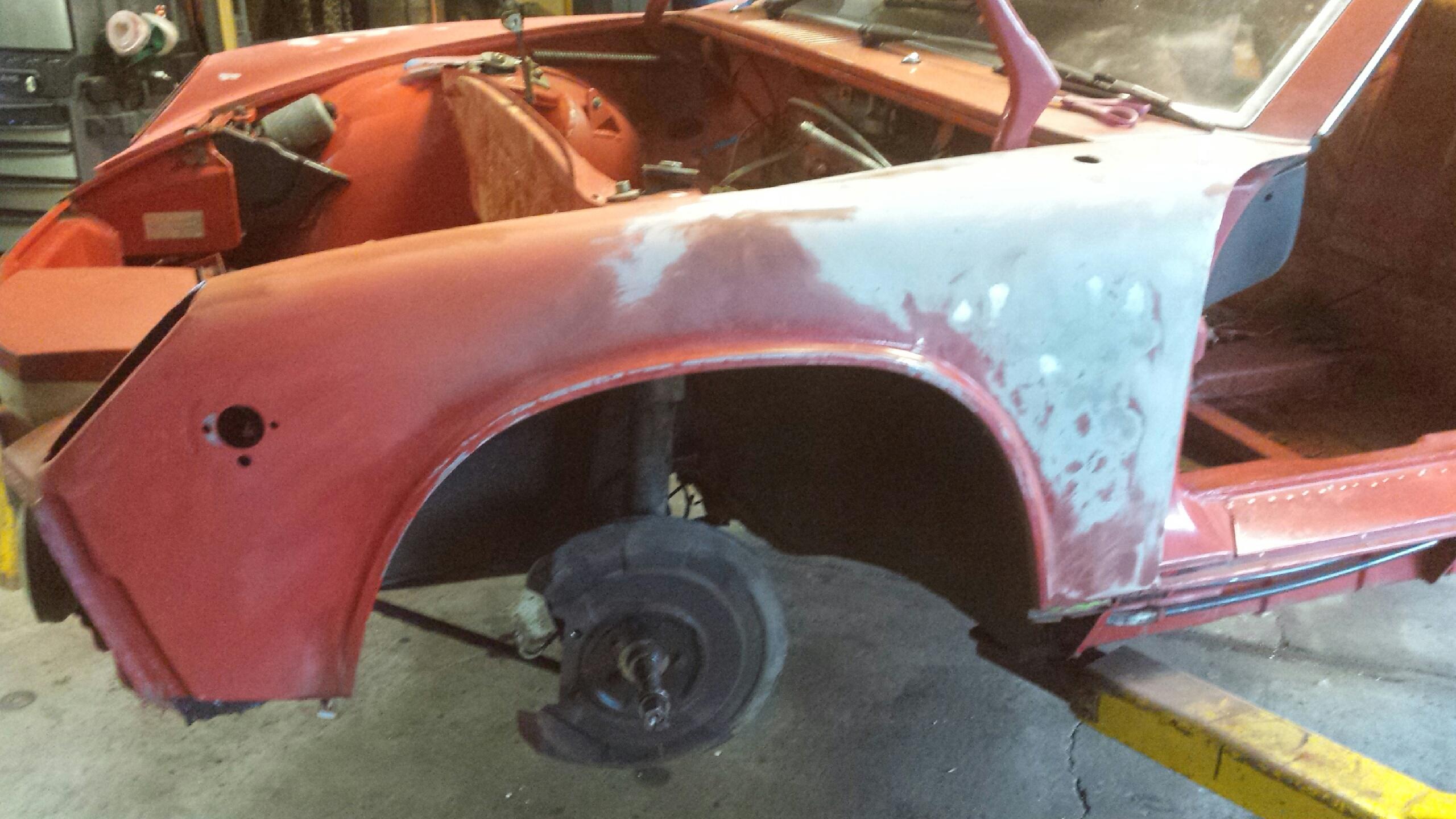 Driver's side fender had some issues after the bearings froze from sitting so long, and the wheel came off and split the fender. It had been repaired but needed a little help.